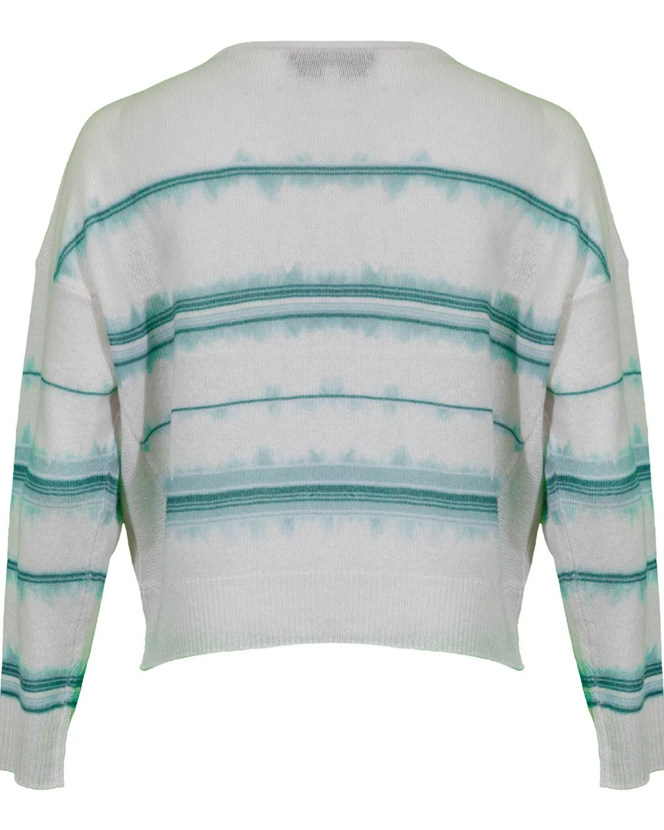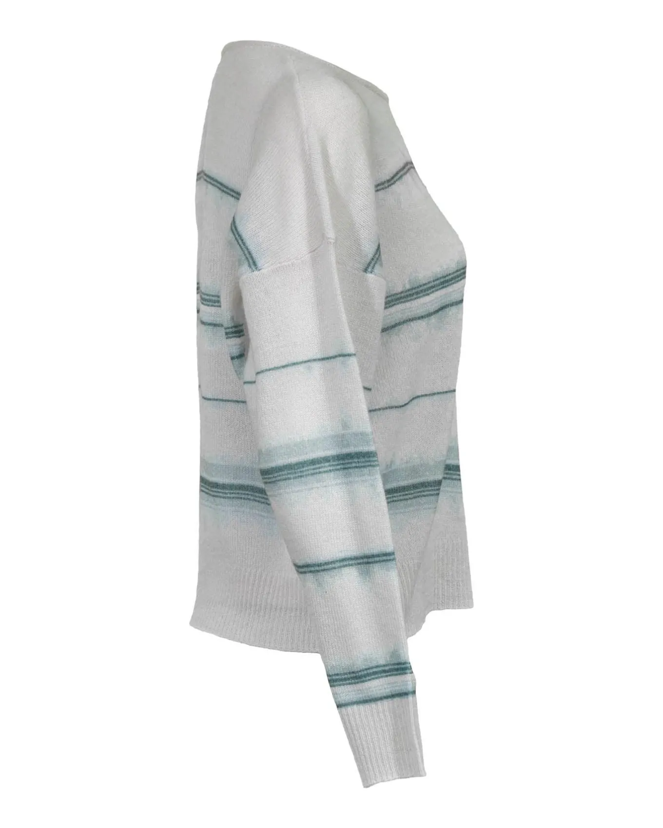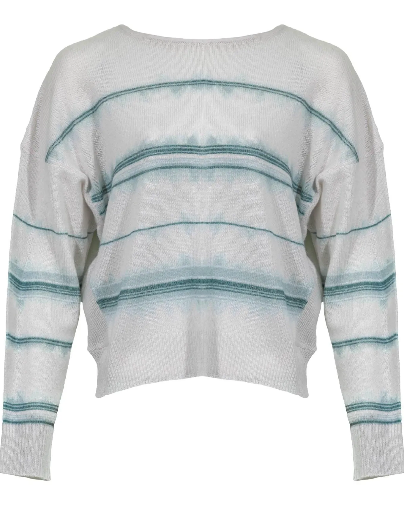 Cashmere striped boatneck sweater with drop shoulders on long sleeves and ribbed trim