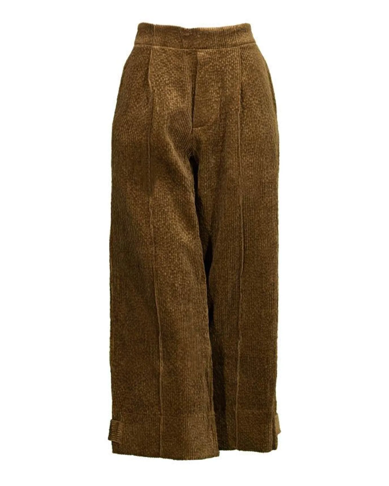 Ayrtight luxurious broken corduroy crop pant with slash pockets, elastic back waist, wide hems with tab allow swap between flood and lantern pant.