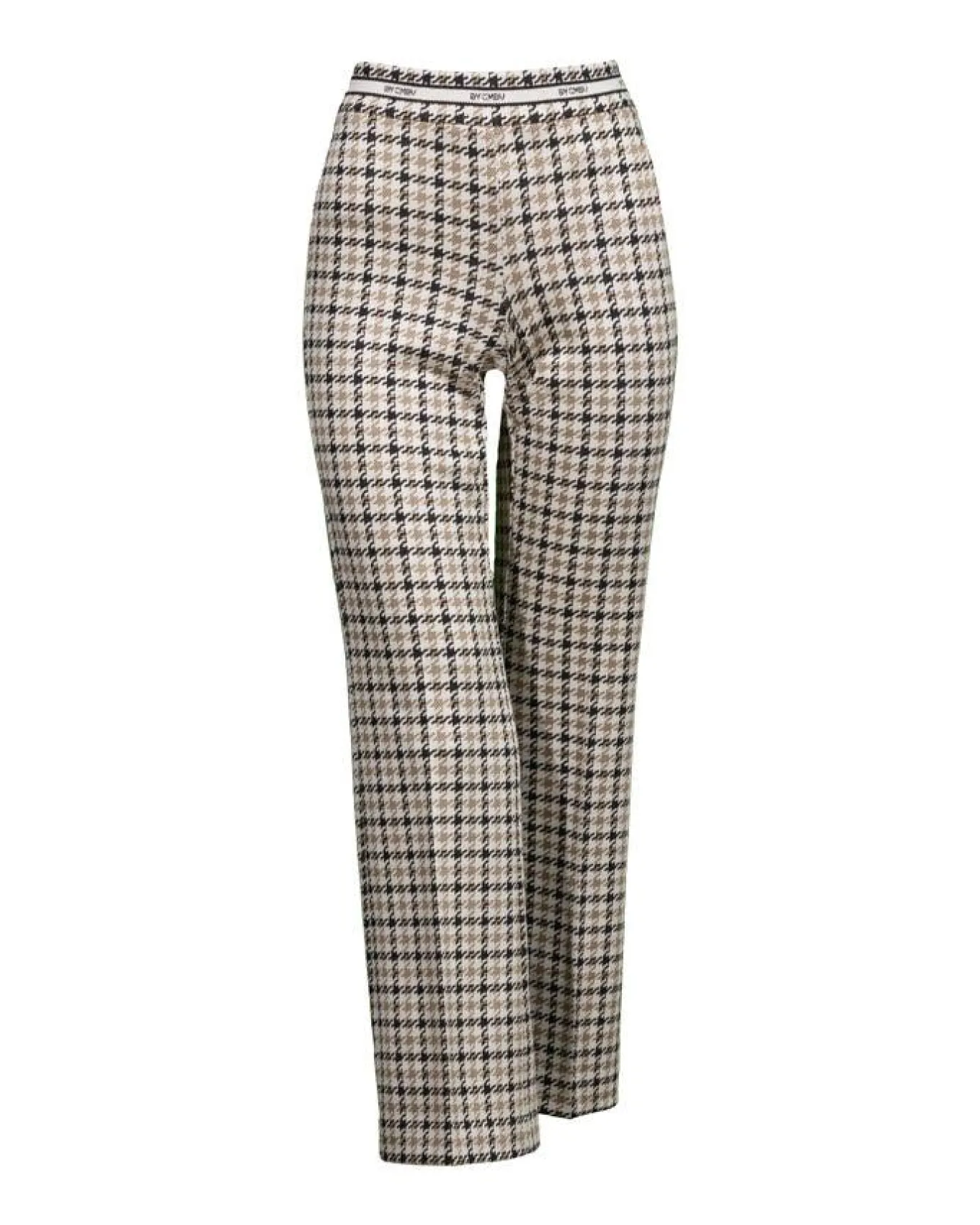 Cambio regular fit stretchy pull on ankle pant with an all over houndstooth print, embossed elastic waistband and straight leg silhouette with slight flare. Size 32 – Inseam 29″.