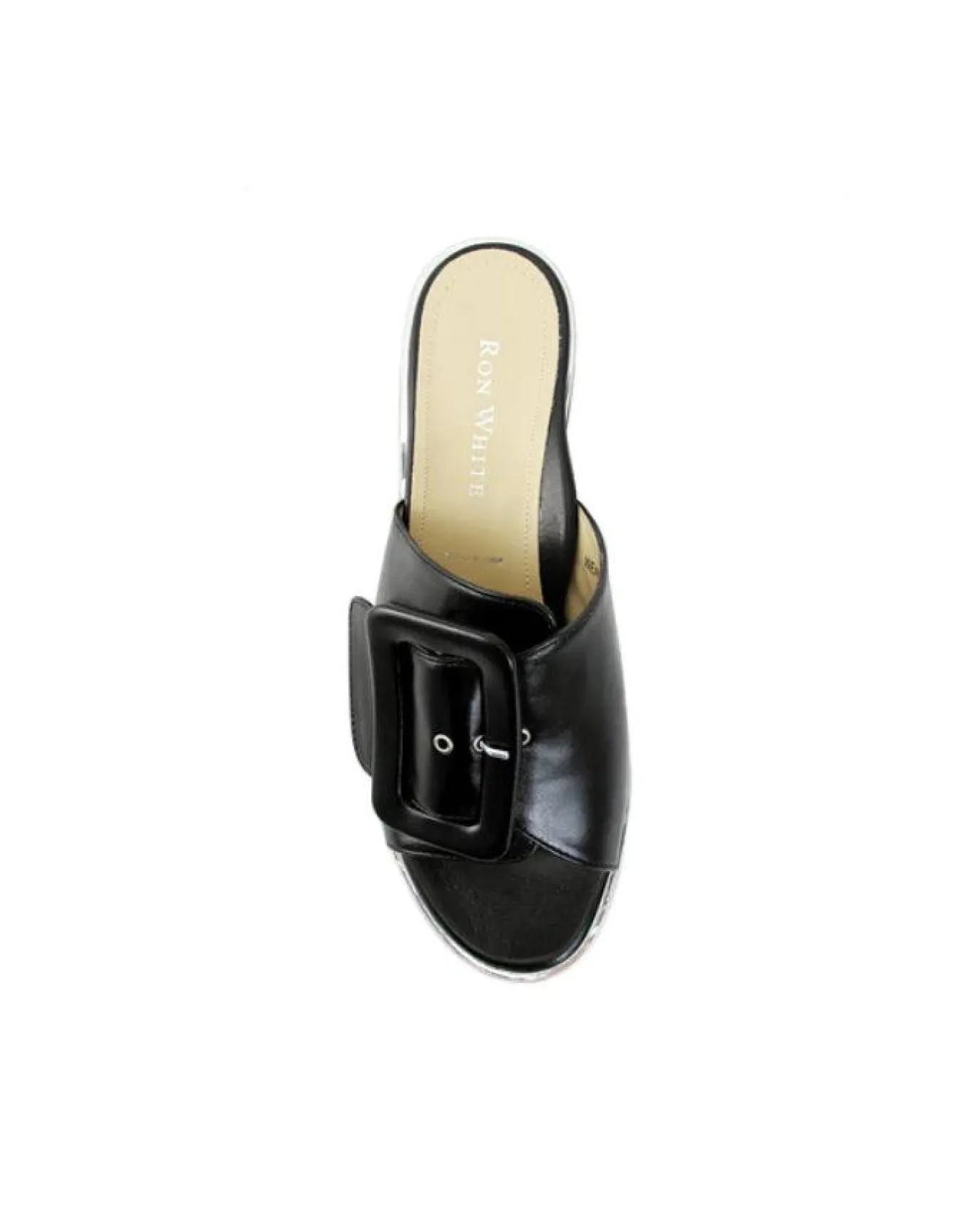 Italian nappa leather open slide sandal with wrapped adjustable buckle, arch support, double padding and ultralight Poron cushioning vibram rubber sole, Heel: 1 1/4″ with 3/4″ Platform
