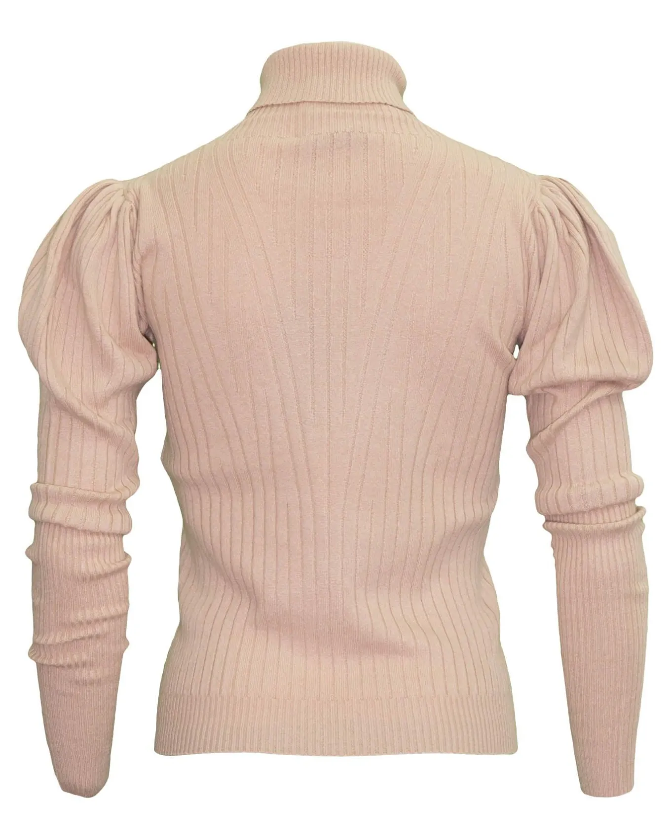 Cashmere blend fine rib turtleneck pullover with puff long sleeves