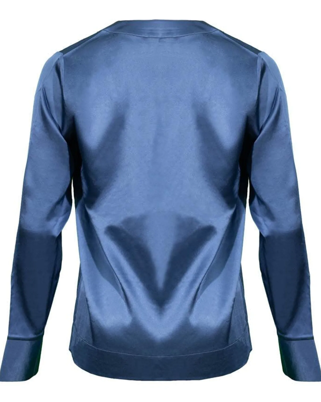 Dea Kudibal luxurious stretch silk pullover with stand collar v-neckline, long sleeve and banded trim. Size S – Length 67cm