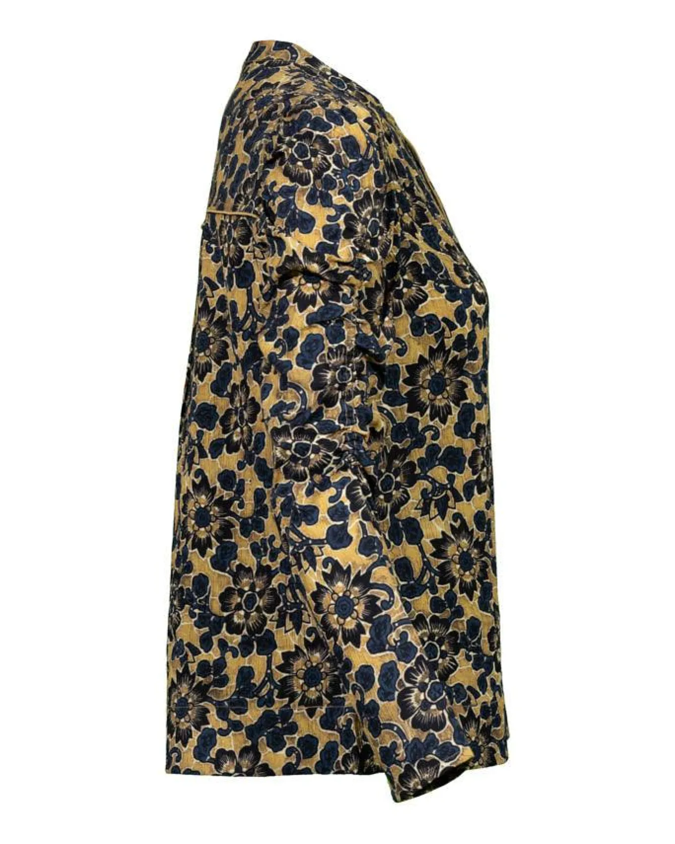 Dea Kudibal sophisticated slim fitfloral print blouse with round neck, button placket, ruching down sleeves, gentle gathers along shoulders in front and back. Size S – Length 65cm.