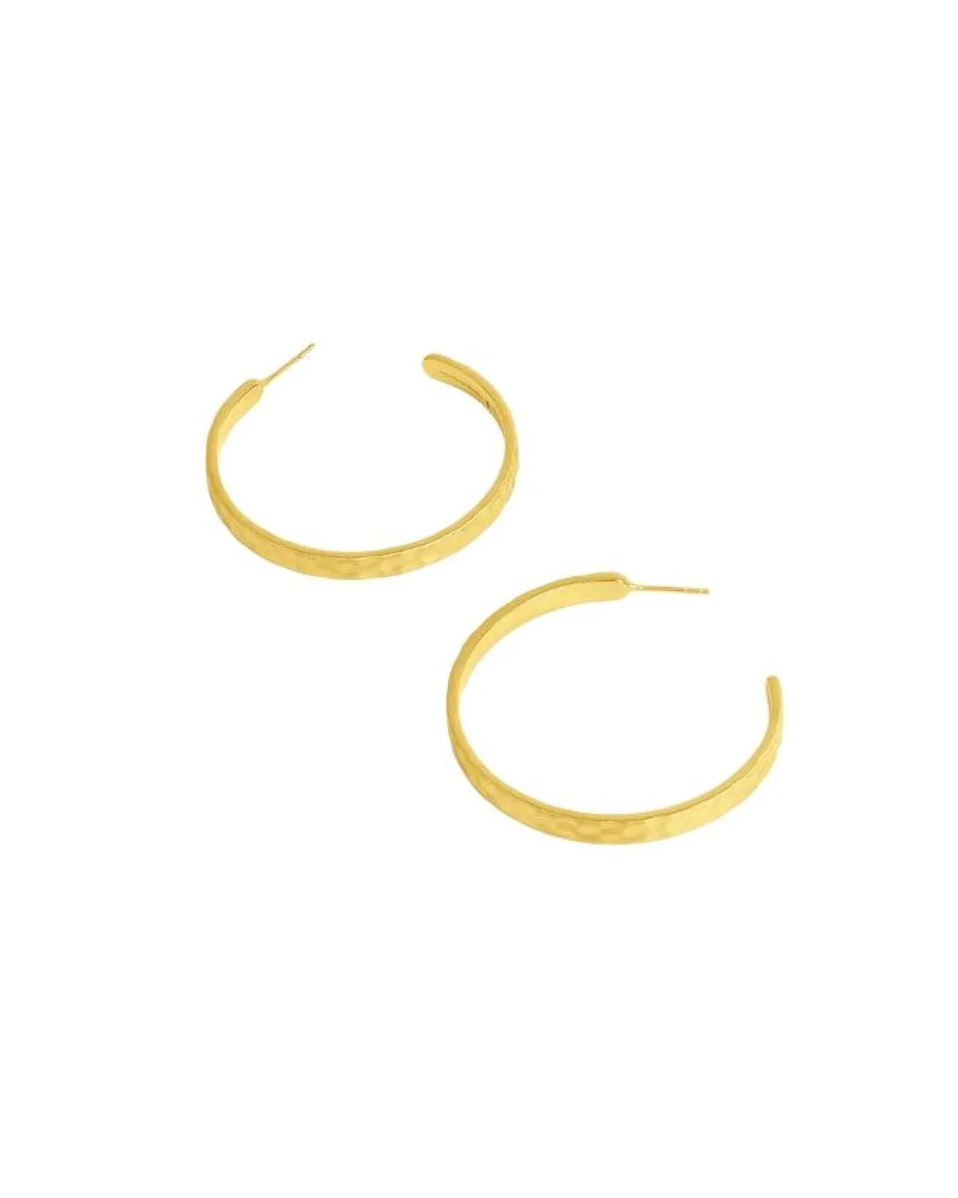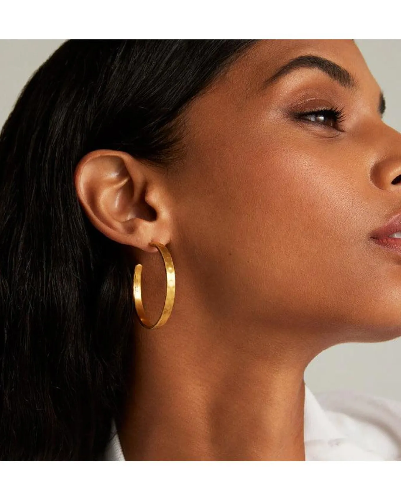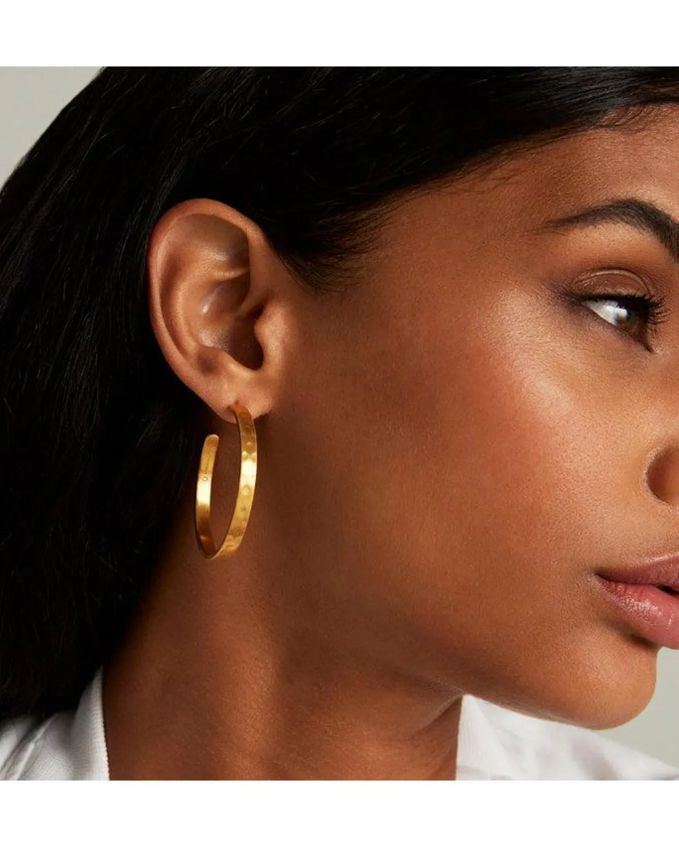 Dean Davidson mid size hoop in a hammered finish. Length 1.65″