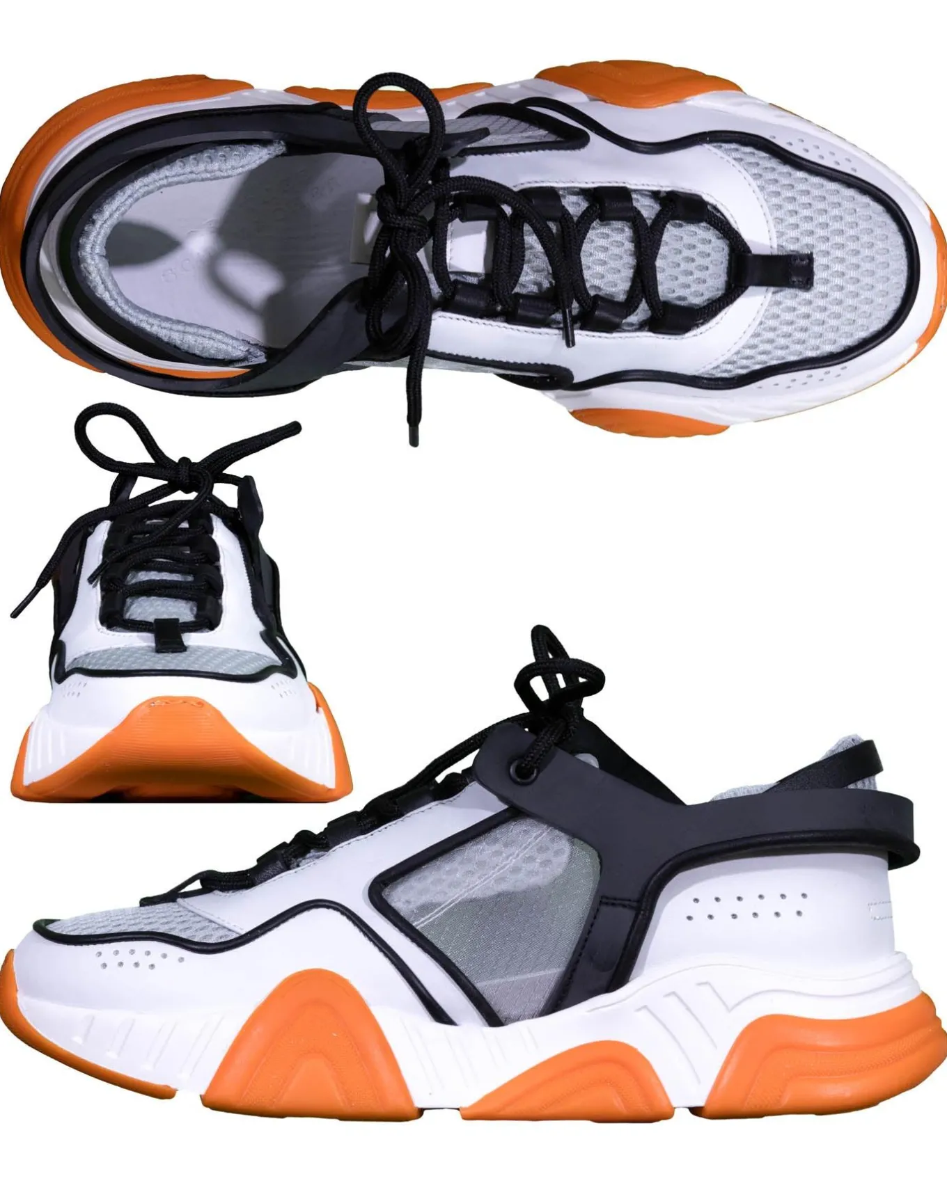 Sporty eco mixed vegan material leather sneakers with mesh inserts and chunky sole