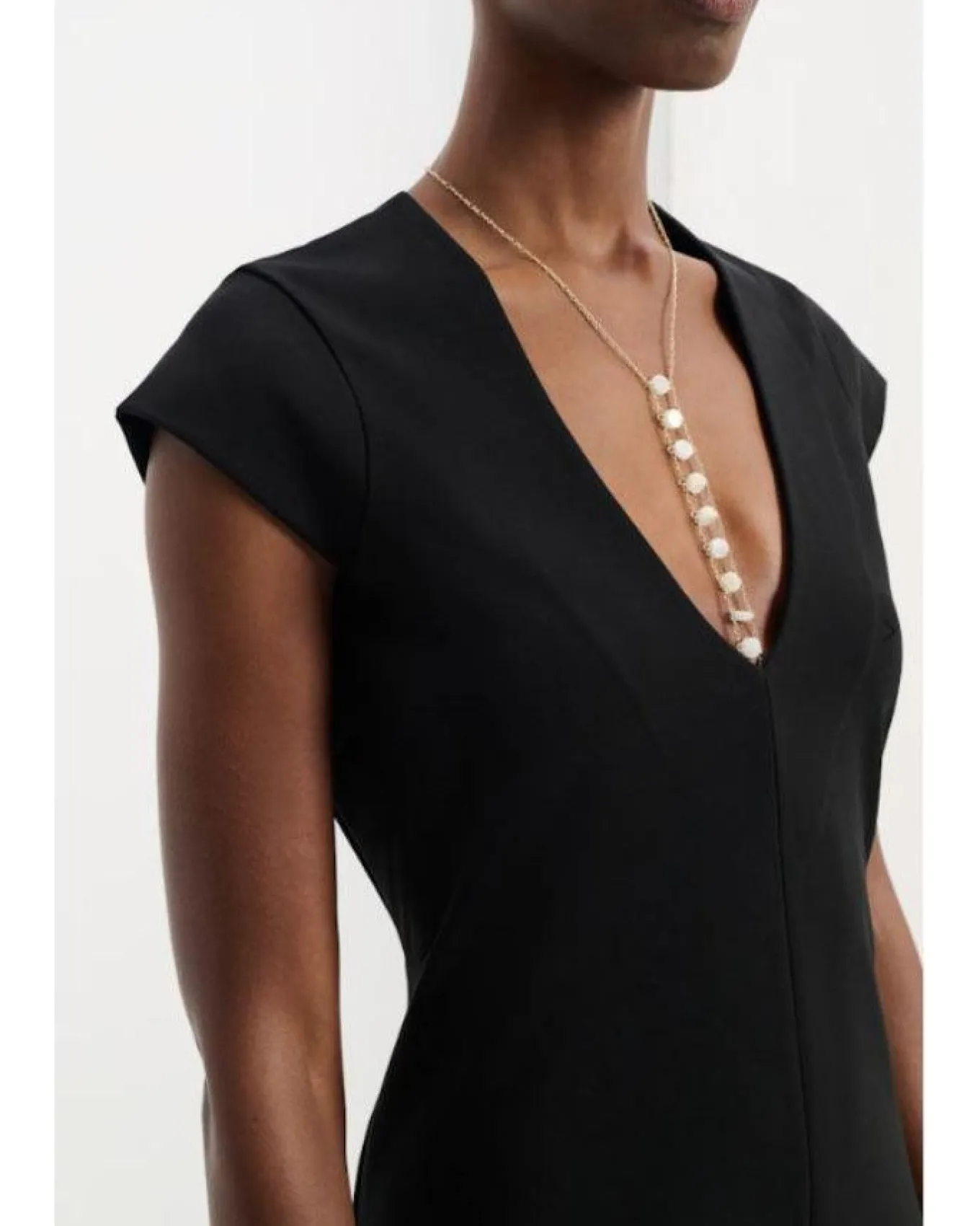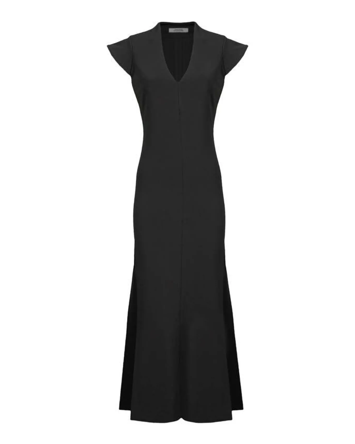 Dorothee Schumach fitted deep V-neck, cap sleeve maxi dress is styled in heavy weight jersey with slightly flared volume at the hem which creates a particularly flattering silhouette.