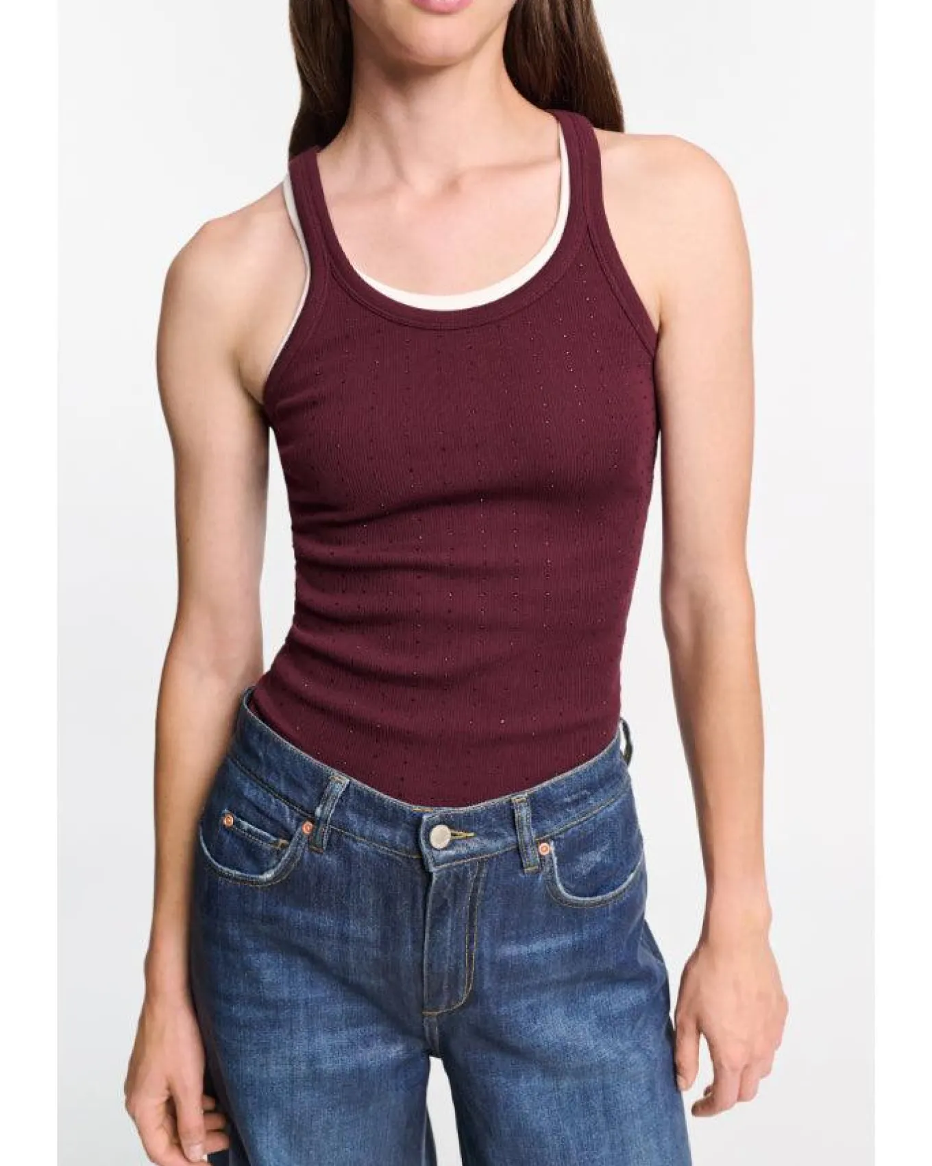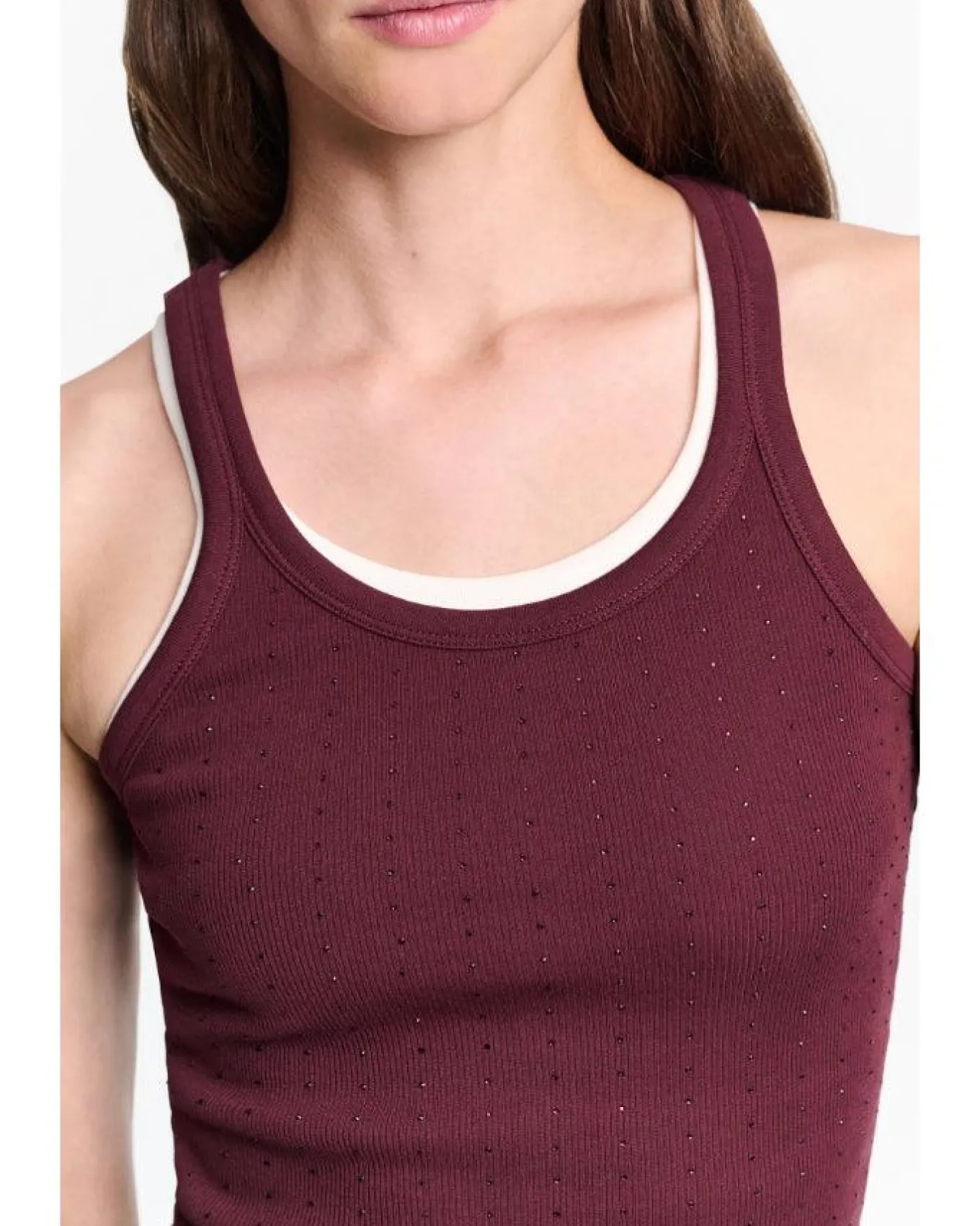 Dorothee Schumacher fitted fine rib cotton tank top with hotfix embellishments, a scoop neckline,center back seam and double stitched hem.