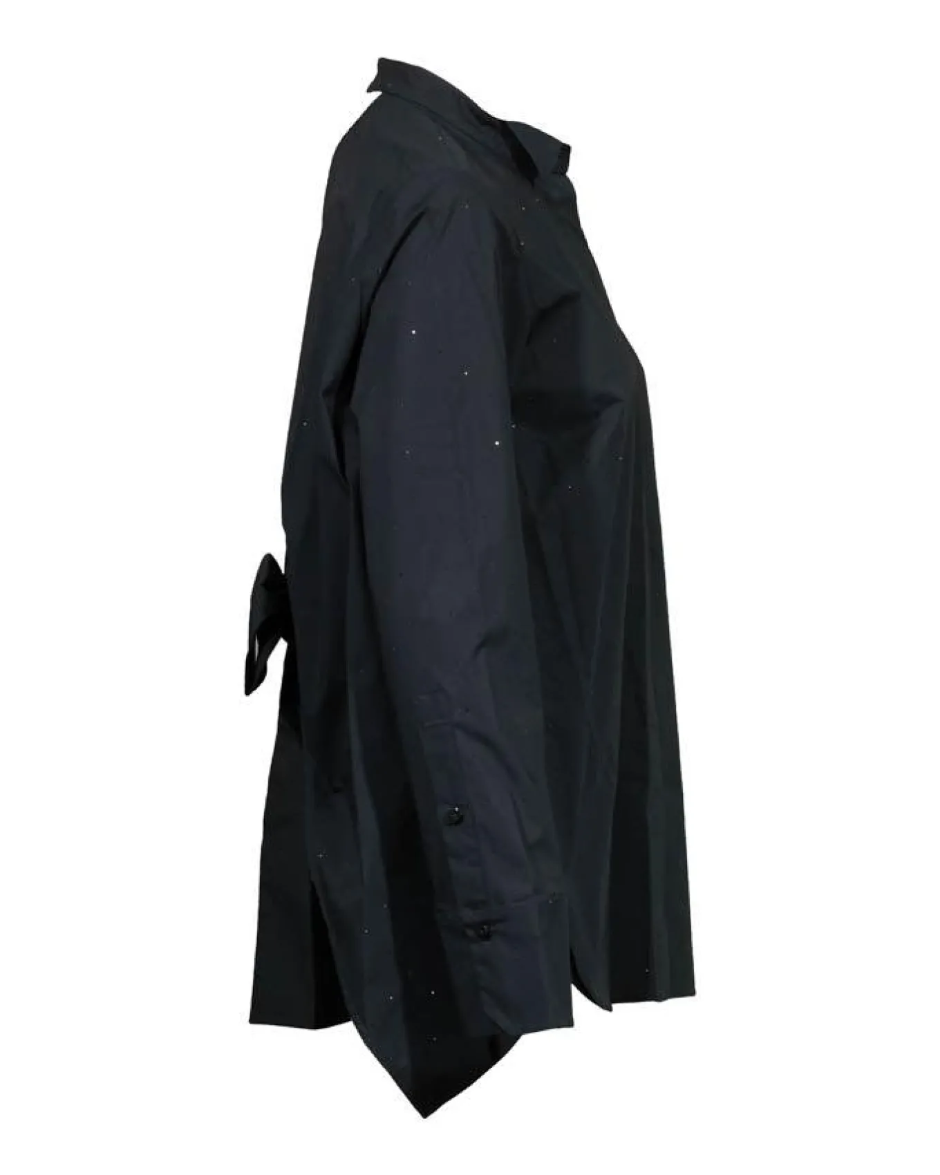 Dorothee Schumacher relaxed fit cotton poplin blouse has a petite collar, graphic patterned rhinestone embellishments, concealed button front fastening, open back with knot detail and a curved hem.