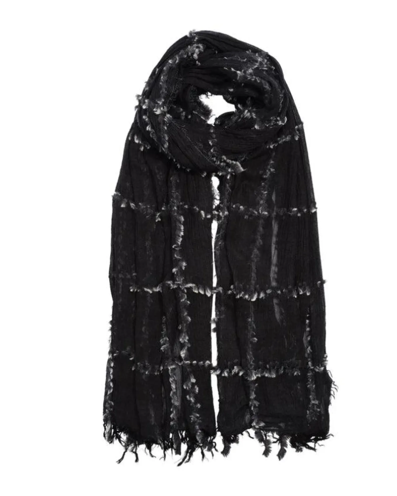 Echo modern luxury faux fur plaid wrap with fringe hem is perfect to elevate your look. Dimensions: 30″ x 78″.