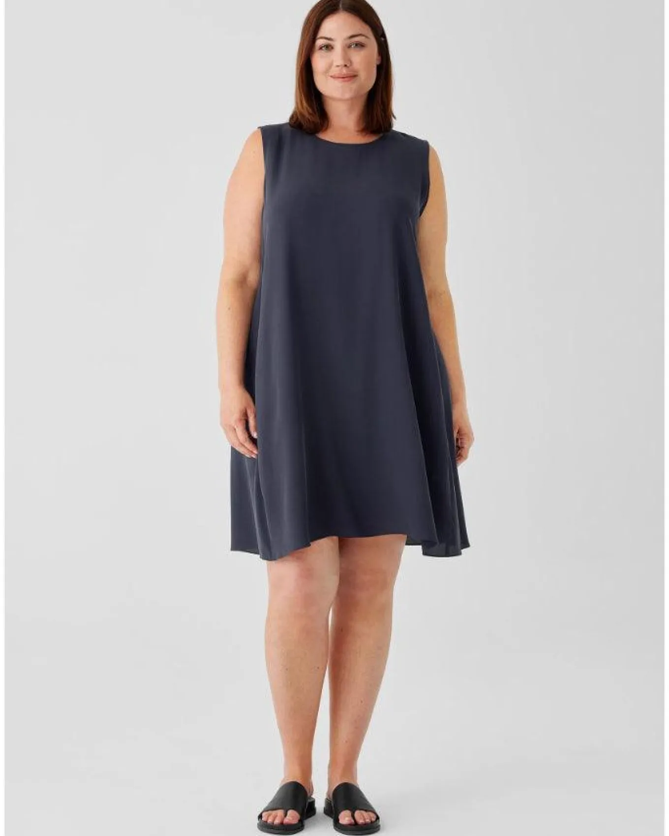 Eileen Fisher Silk Georgette Crepe Sleeveless Dress
