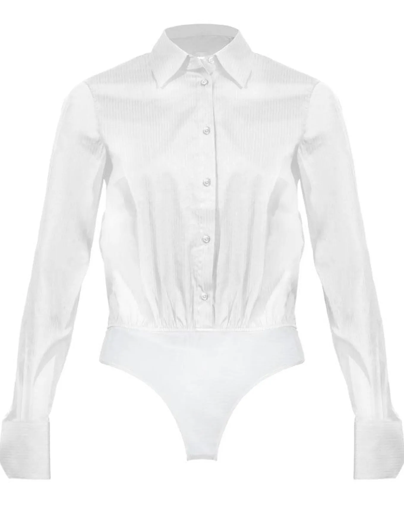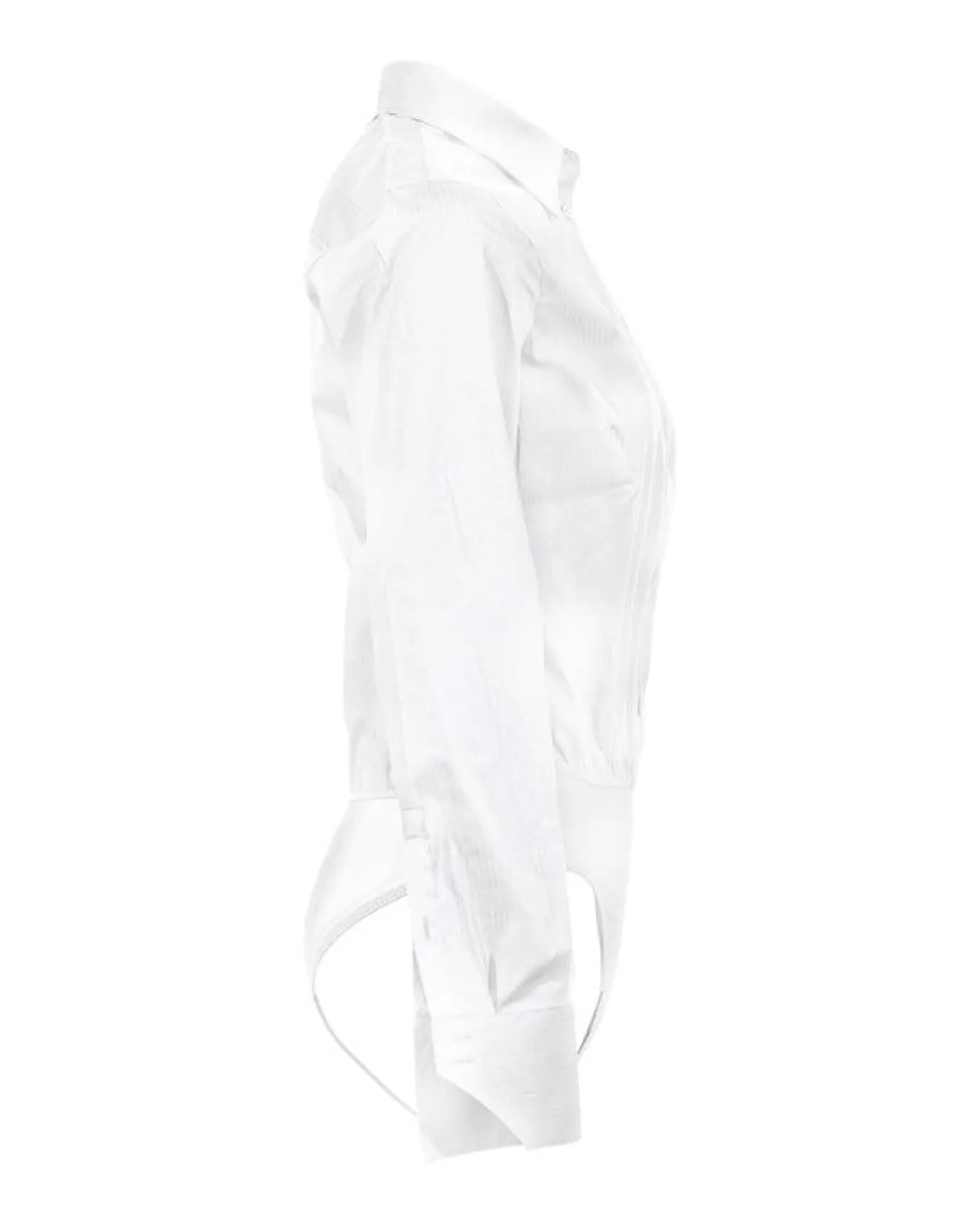 Hugo Boss comfortable stretch long sleeve body suit shirt with point collar, button down front and button cuffs.