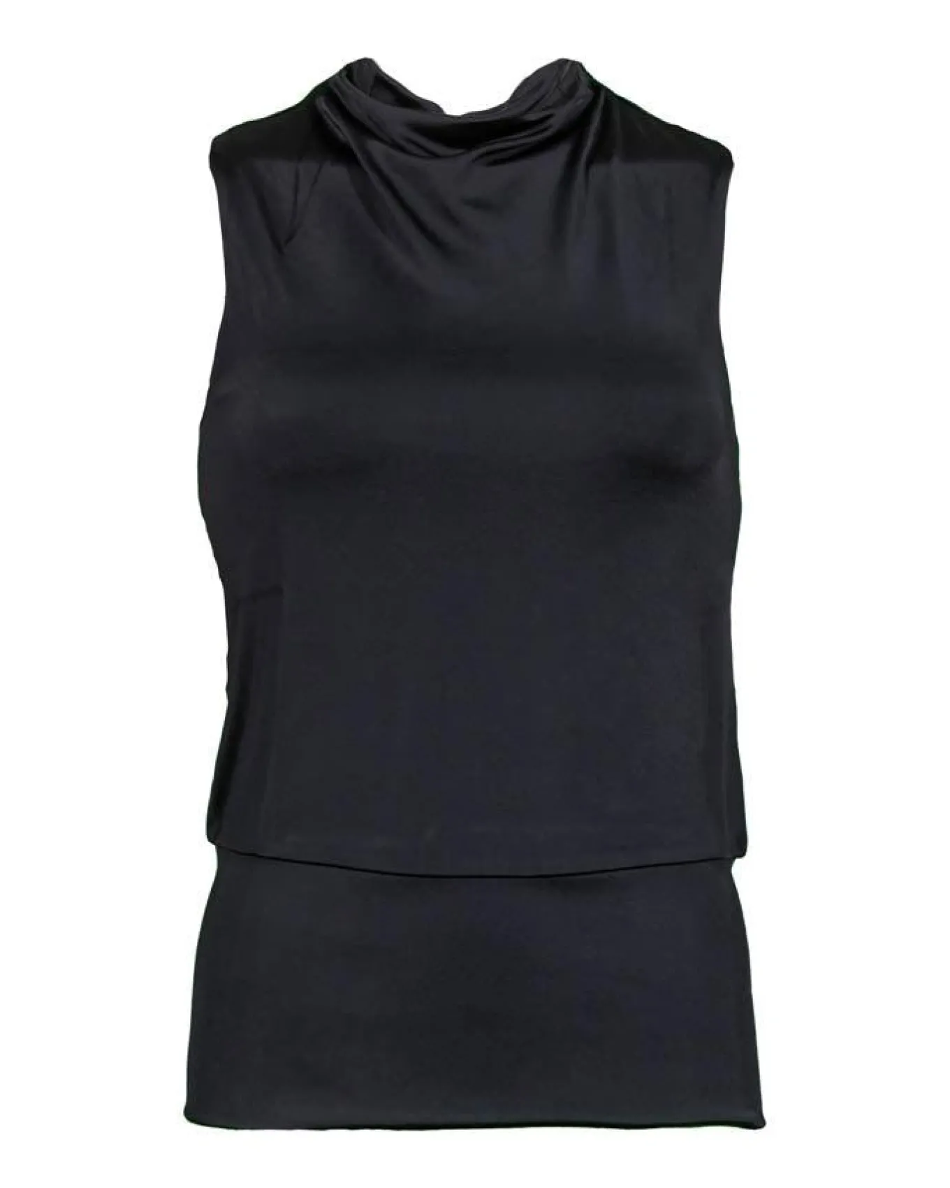 Hugo Boss elegant draped cowl neck tank top with wide banded trim and the ability to work into so many different layered looks.