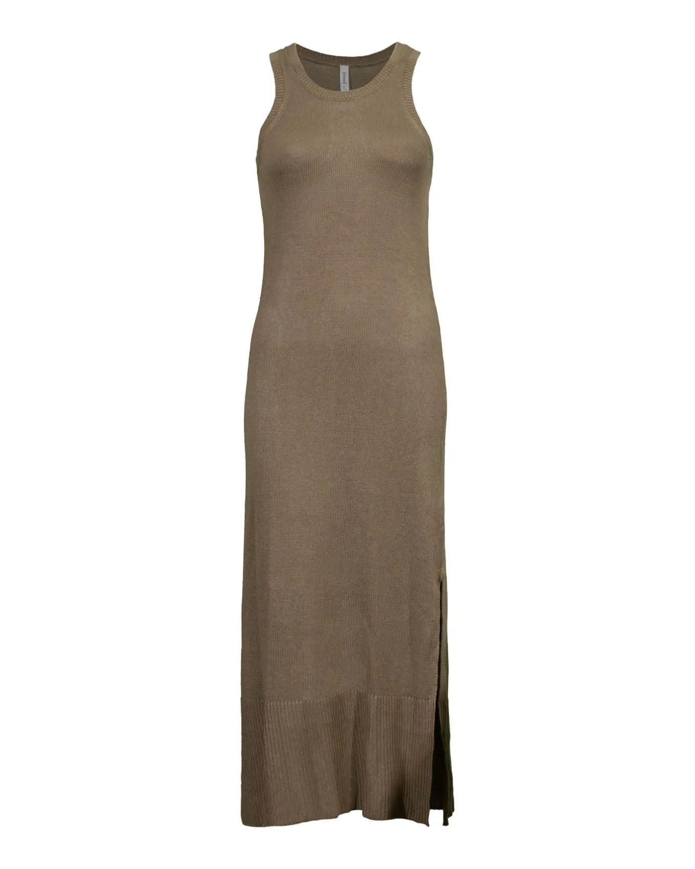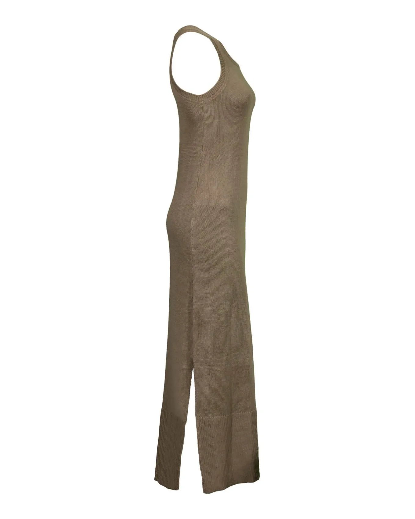 Lightweight mesh linen blend sleeveless crew neck maxi dress with side slits