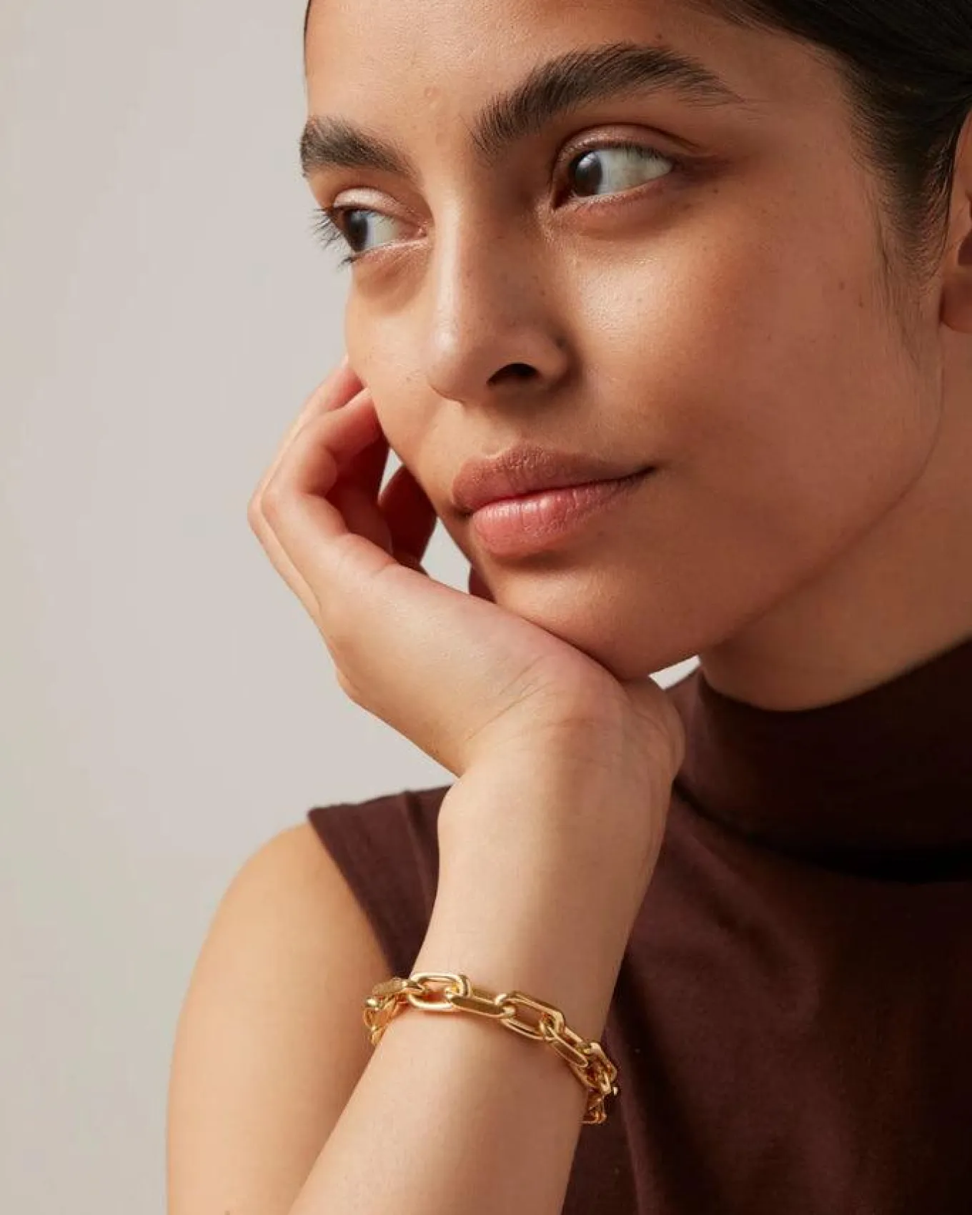 Jenny Bird’s Loire bracelet boasts crisp, faceted links with an integrated, elevated closure.