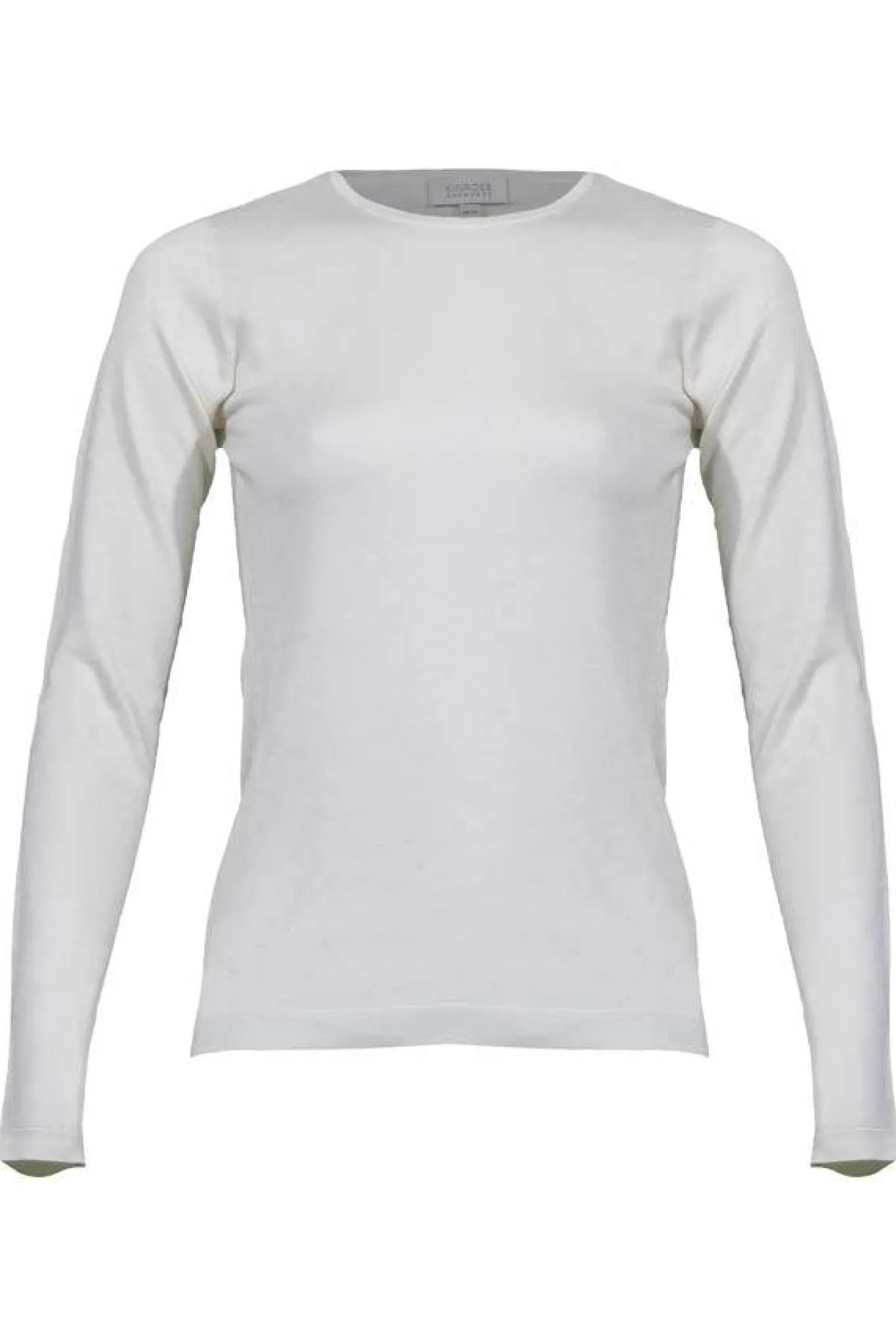 Kinross Cashmere fitted silk cashmere blend crew neck pullover with long sleeves.