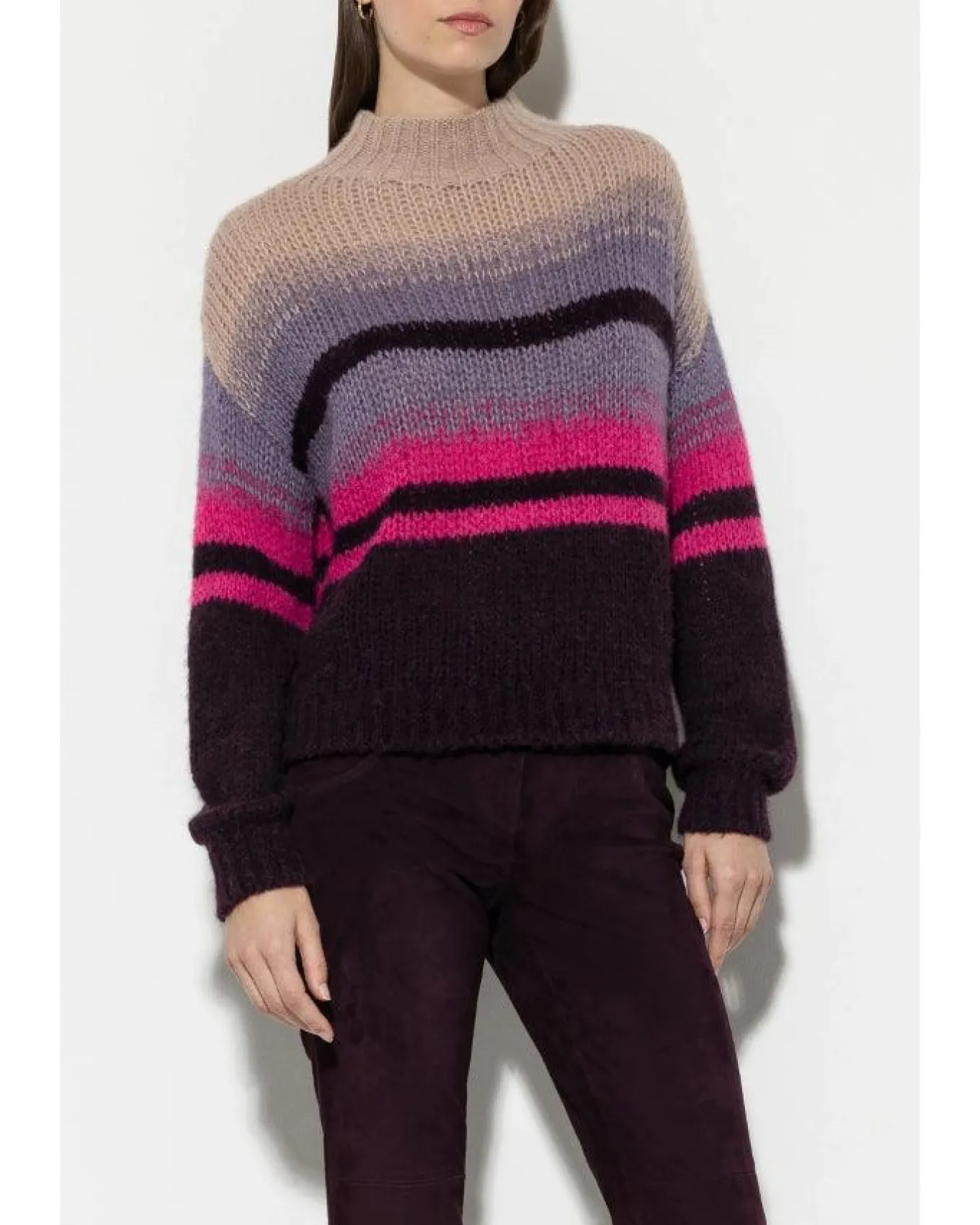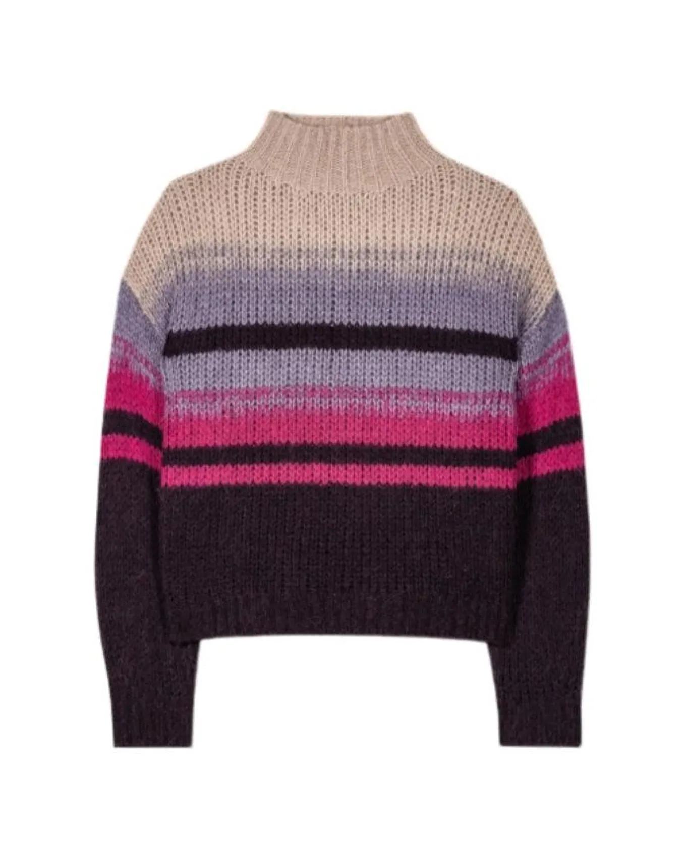 Luisa Cerano lightweight soft wool/alpaca blend knit sweater with a fancy stripe pattern, mock neck, dropped shoulders and ribbed trims.
