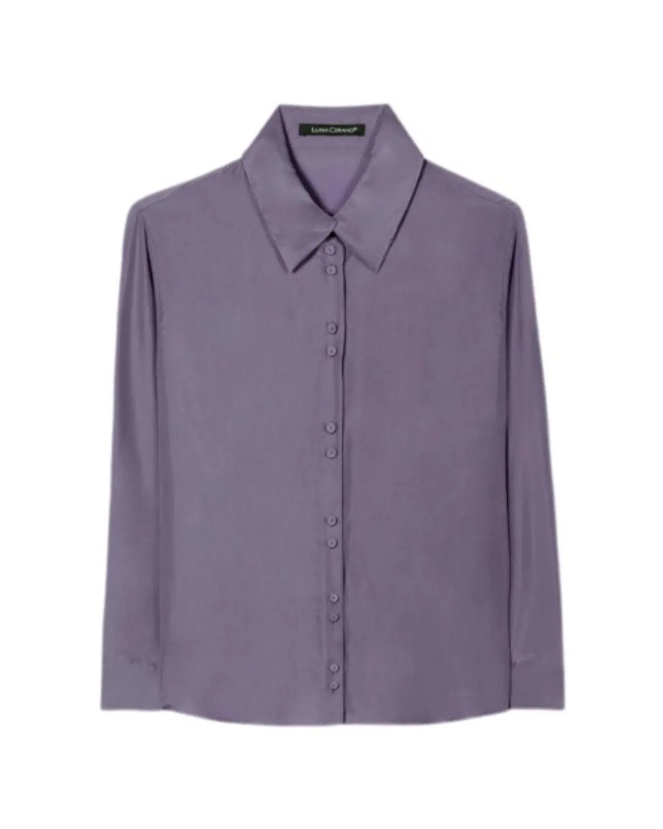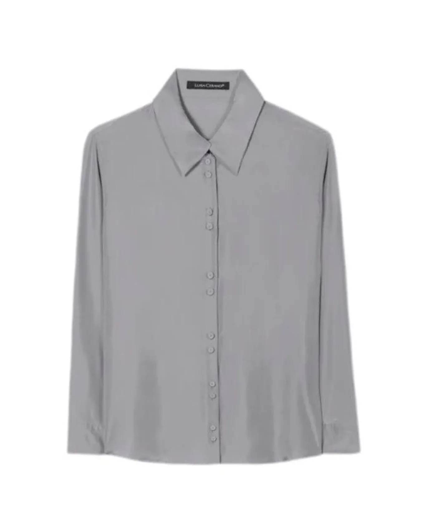 Luisa Cerano lightweight shirt blouse in a matt shimmering silk with a tapered shirt collar, button cuffs, round hem and double button detail front closure.