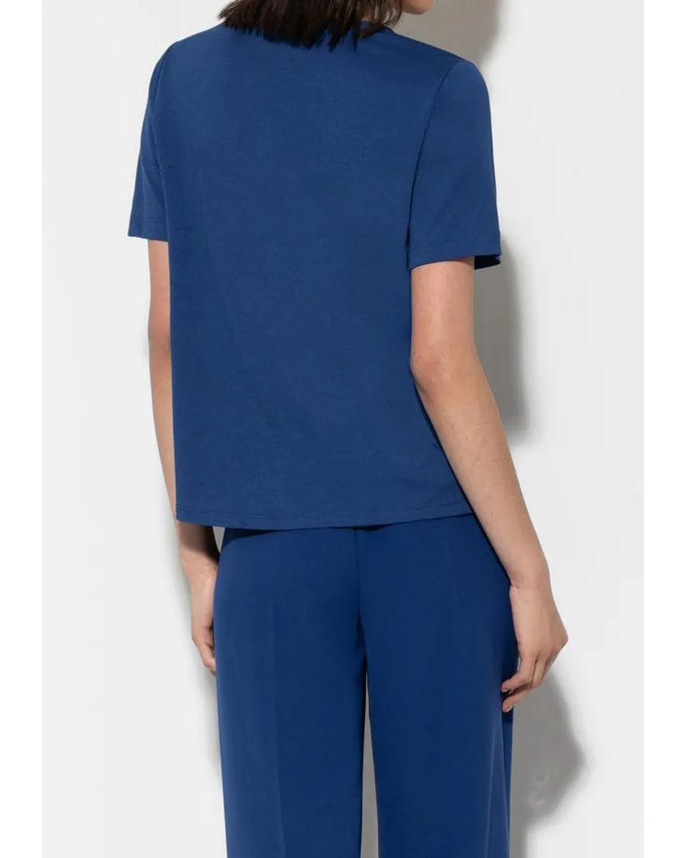 Luisa Cerano mixed fabric tee with round neck, narrow shoulders and side slit hem. The front is made from a flowing silk blend. The mid-length sleeves and the back are made of jersey fabric.