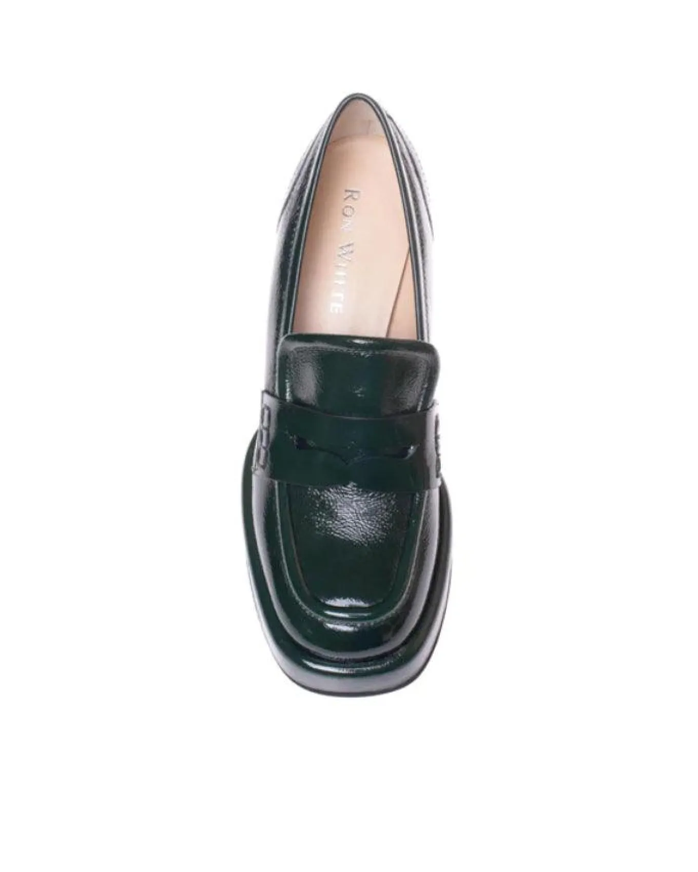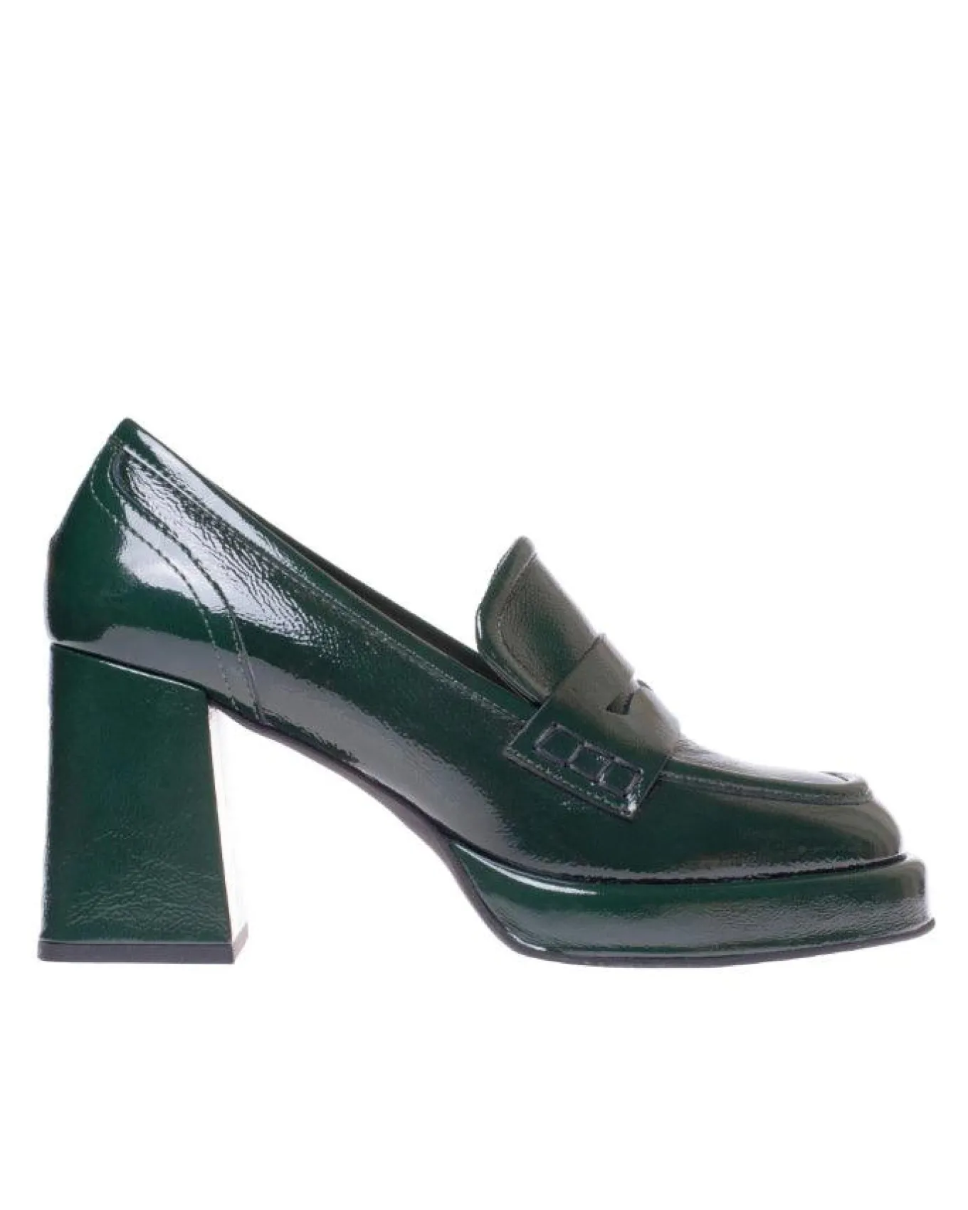 Crinkle patent leather platform loafer with 3″ heel and 3/4″ platform, anti-slip rubber sole