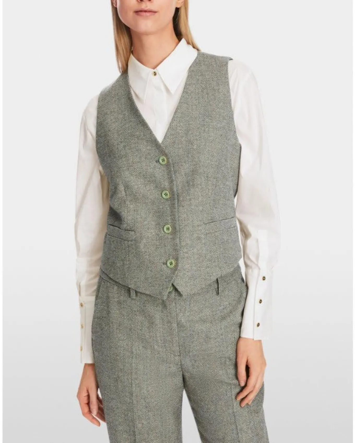 Marc Cain herringbone pattern vest with darts to ensure a figure-hugging silhouette. Stretch material for greater comfort. Buttons and welt pockets round off the look.