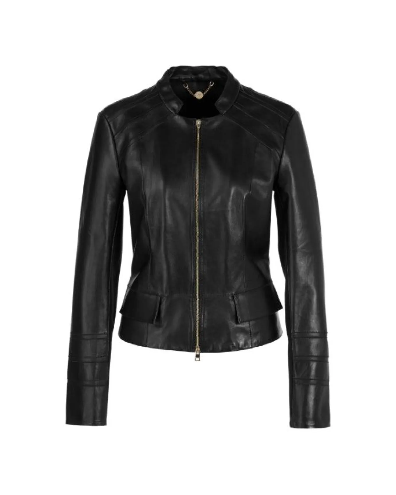 Marc Cain figure hugging silhouette soft lamb leather with stretch inserts on the sleeves and torso offers comfort. Elaborate quilting on the shoulders and elbows as well as the decorative pockets provide extra eye-catching details. The jacket has a stand-up collar and is fastened with a two-way metal zip.