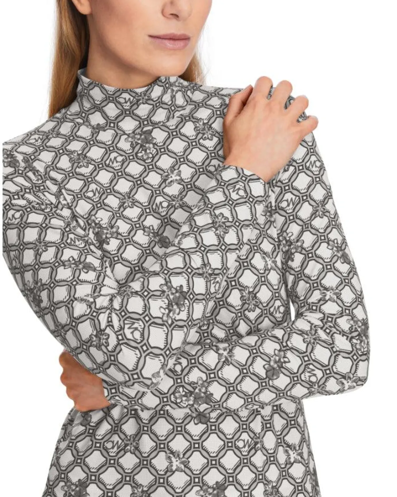 Marc Cain fitted stretchy second skin funnel neck pullover with exclusive MC print.