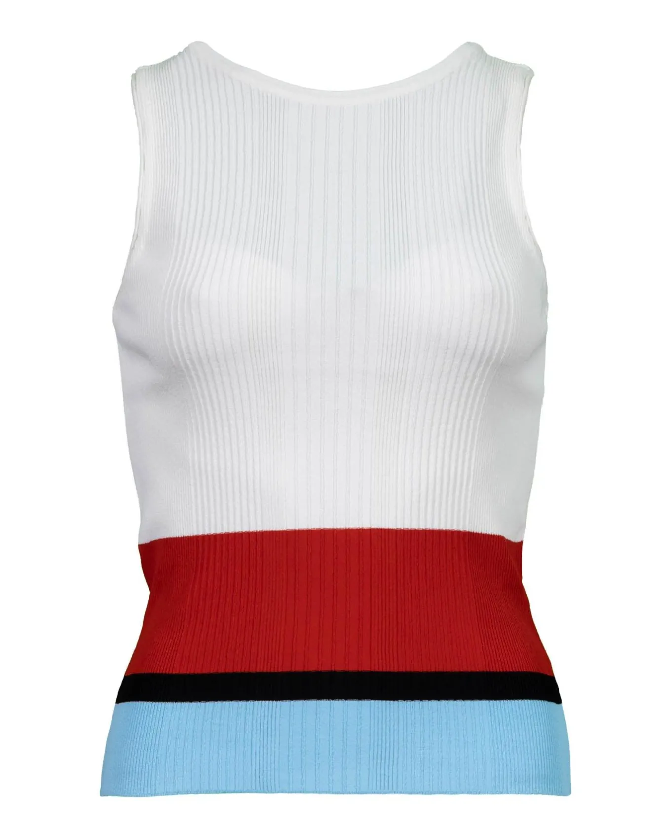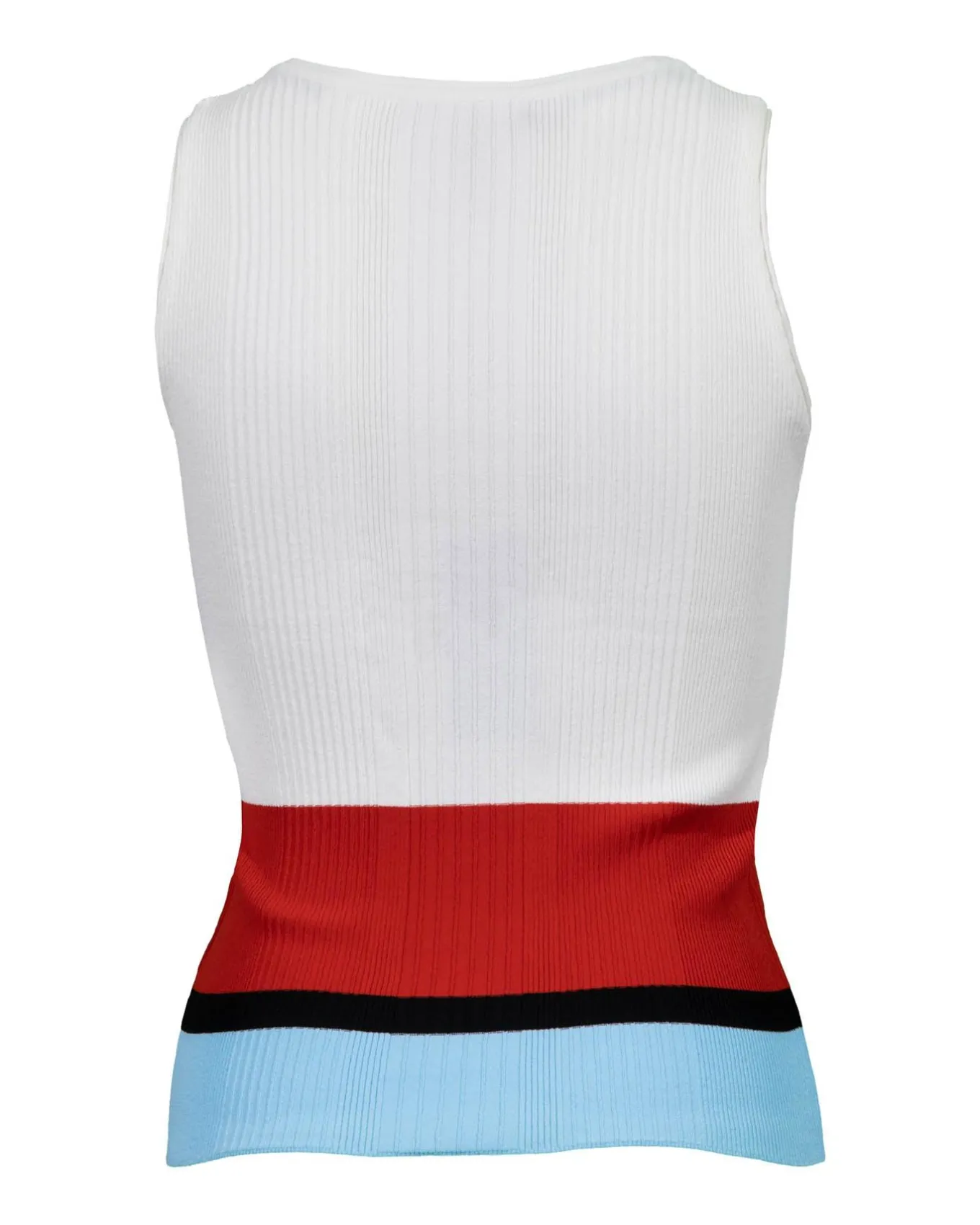 Round neck straight fit shell in ribbed texture and color block pattern