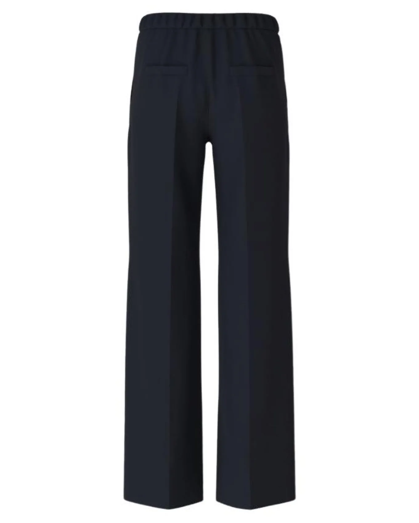 Marc Cain wide, extra long leg pull on trousers with side pockets, back welt pockets and elasticated insert in the back, Length 34″.