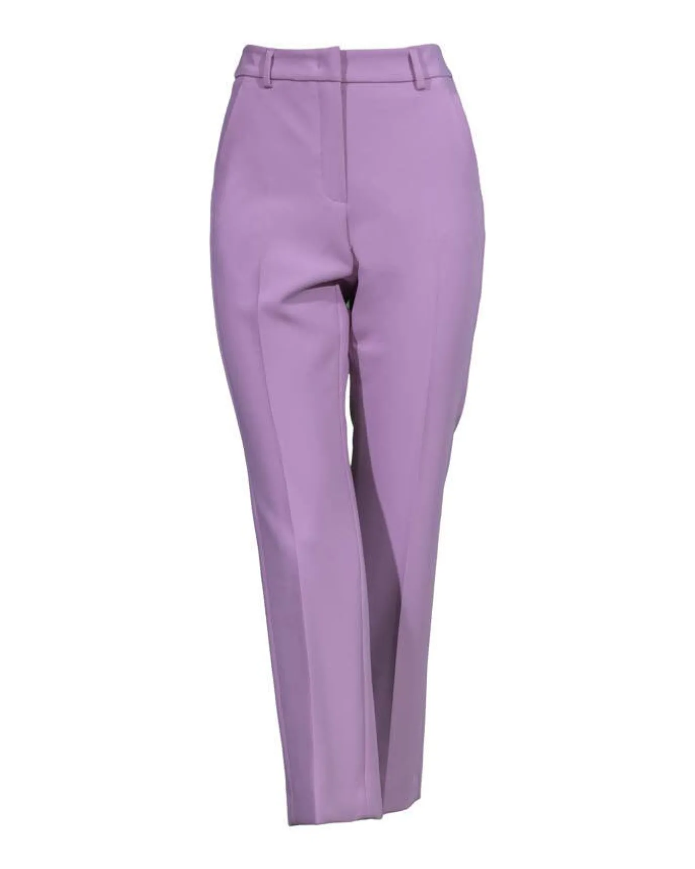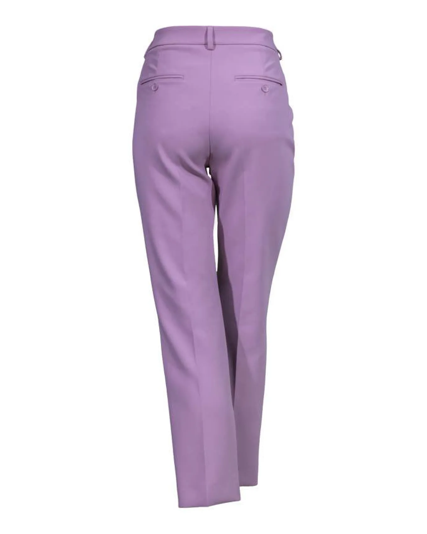 Max Mara double faced stretch viscose canvas trousers featuring a classic silhouette with a straight leg and pressed pleat detail., side pockets and buttoned double welt rear pockets. High cut waist strap, fly covered zip and small hook and bar fastening. Cropped ankle length.