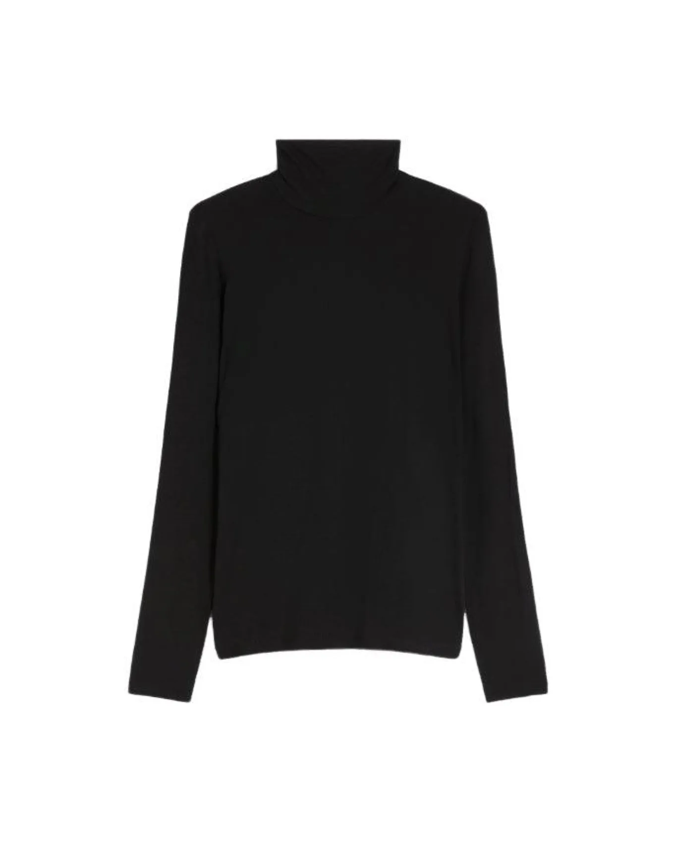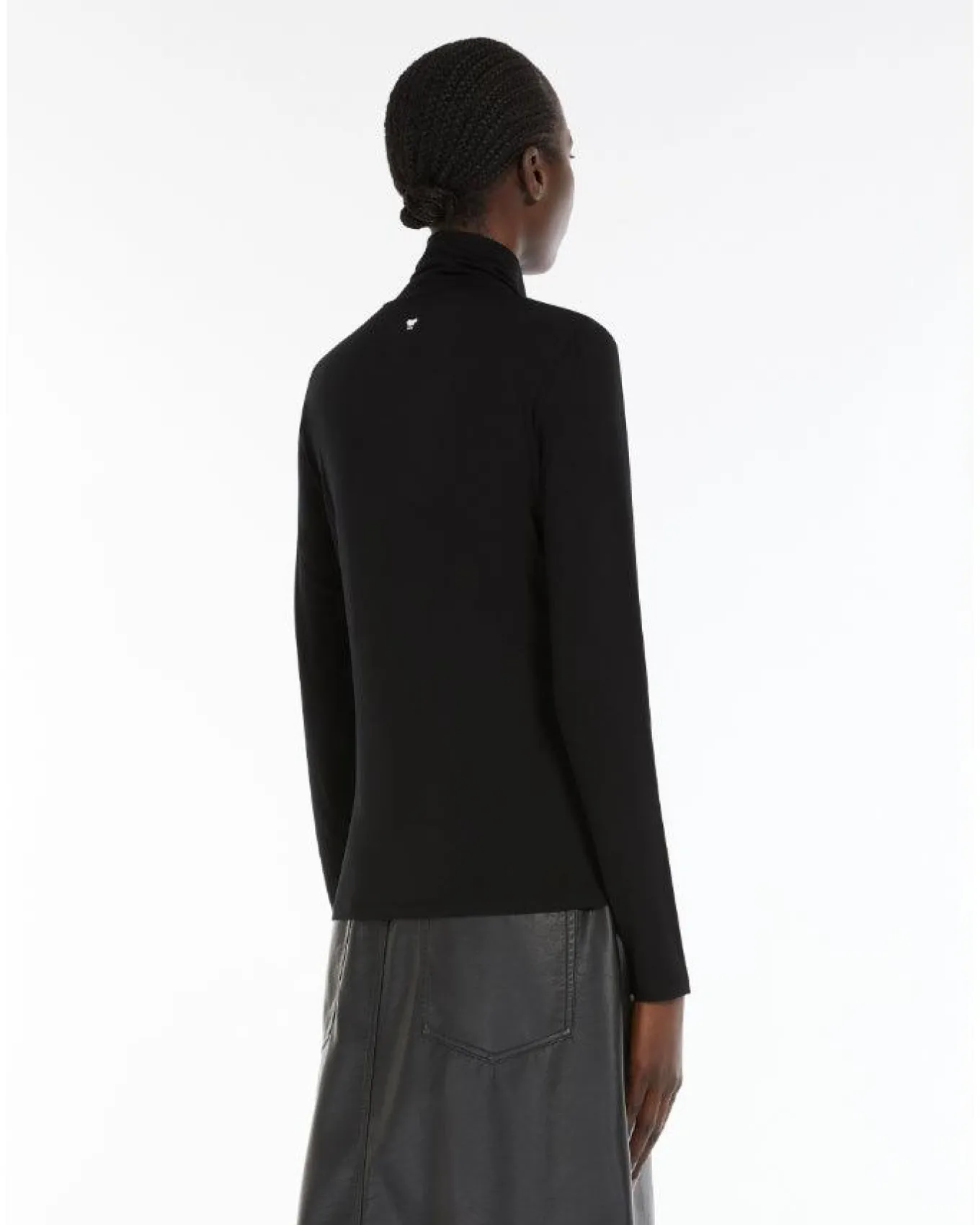 Max Mara Weekend slim fit long sleeve turtleneck in soft viscose jersey fabric. The back of the neck is customized with a butterfly logo print.