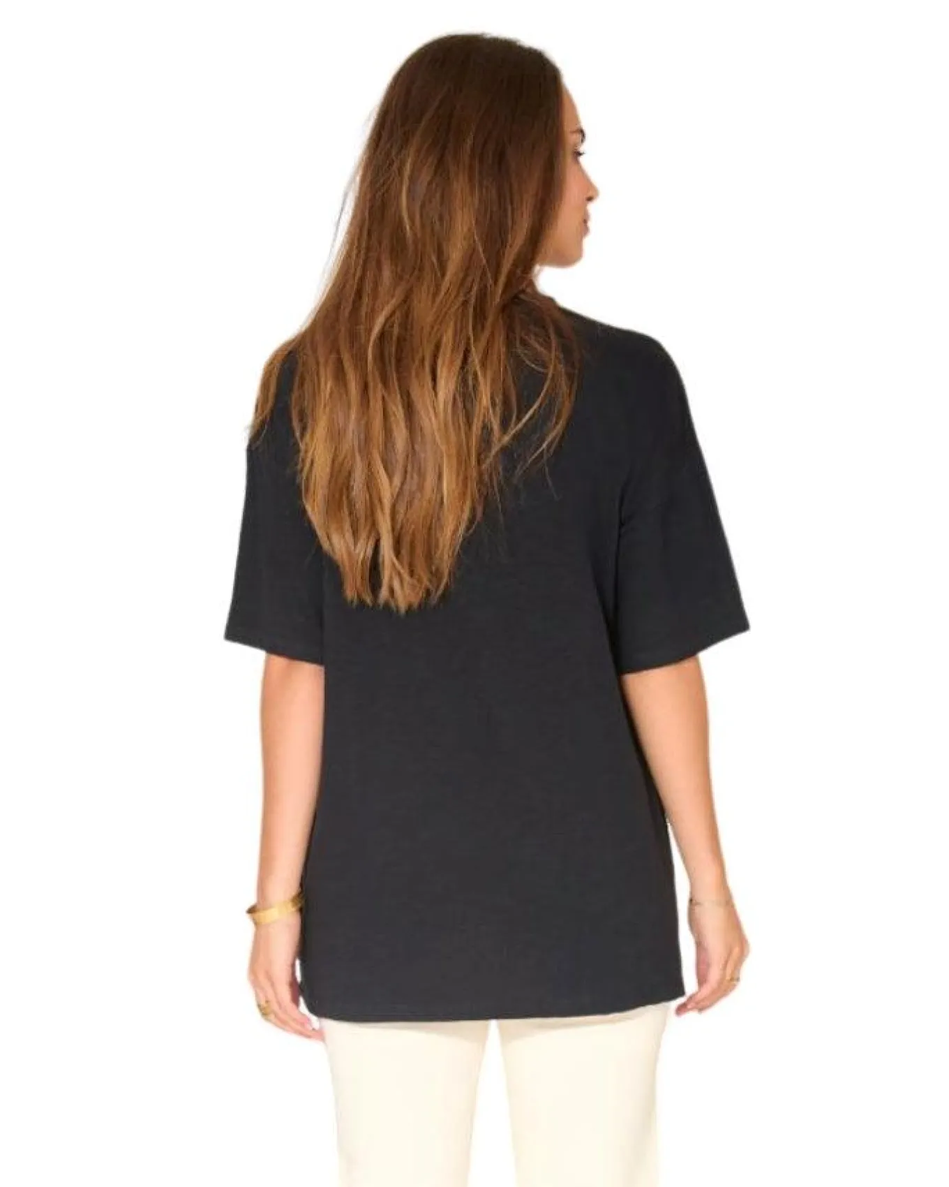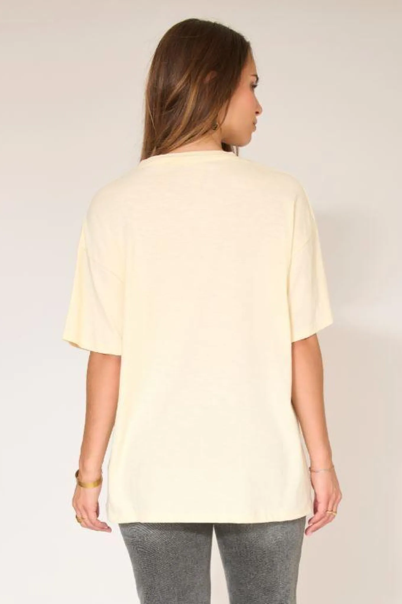 MKT Studio loose fit cotton tee in a collector design, Tanabe Blondie with crew neck drop shoulders, longer above elbow short sleeves.