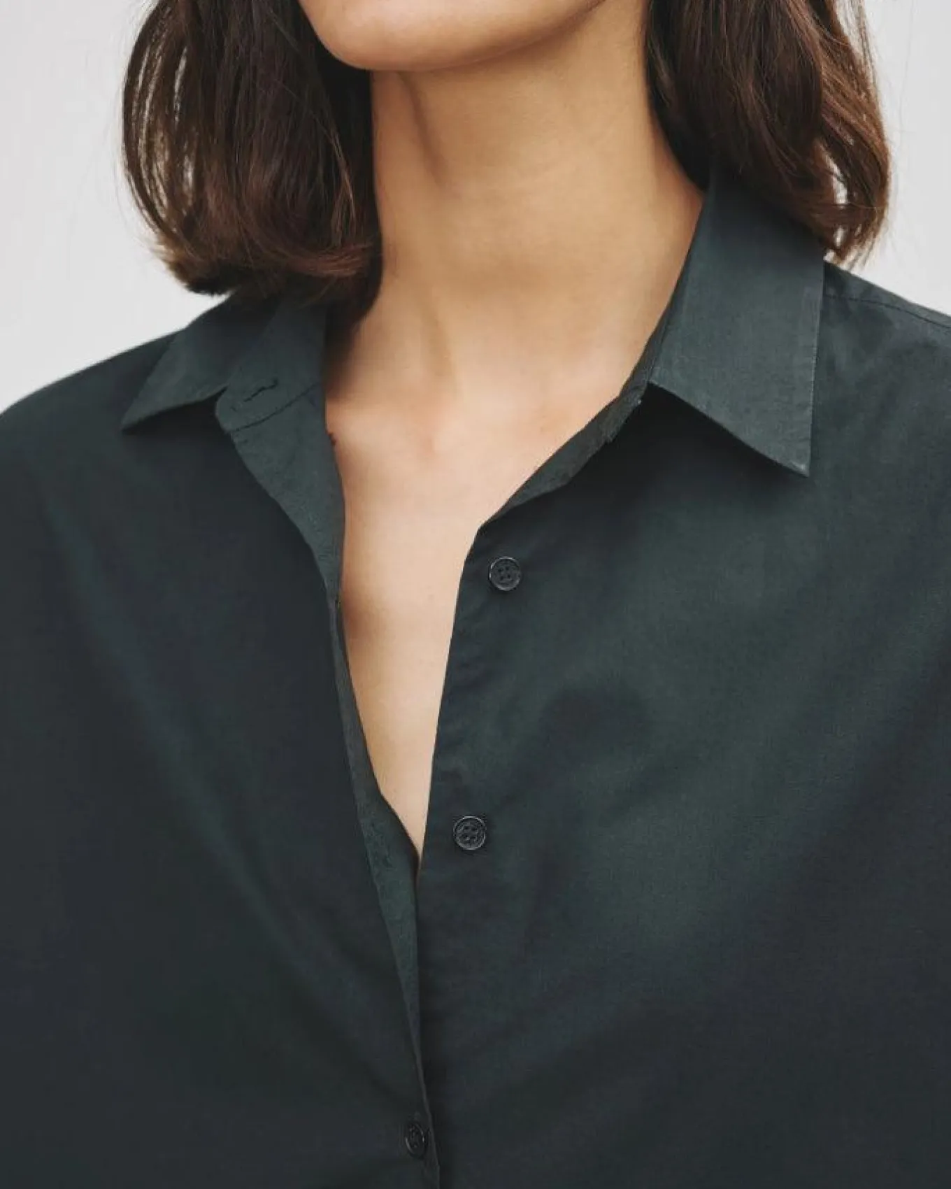 Nili Lotan elevated classic cotton button down shirt is rendered in a crisp poplin. A modern and clean silhouette without top-stitching, and an oversized fit that is slightly longer in the back.