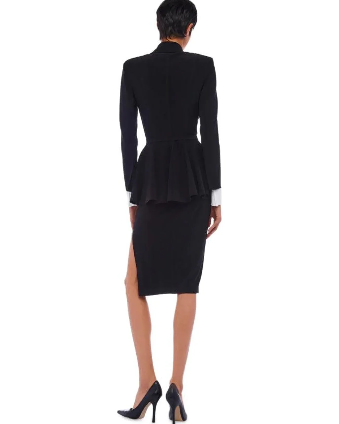 Elevate your style with the Norma Kamali Side Slit Skirt, a piece that redefines everyday elegance. This knee-length skirt, crafted with a luxurious 4-way stretch poly lycra, offers both supreme comfort and a flattering fit.