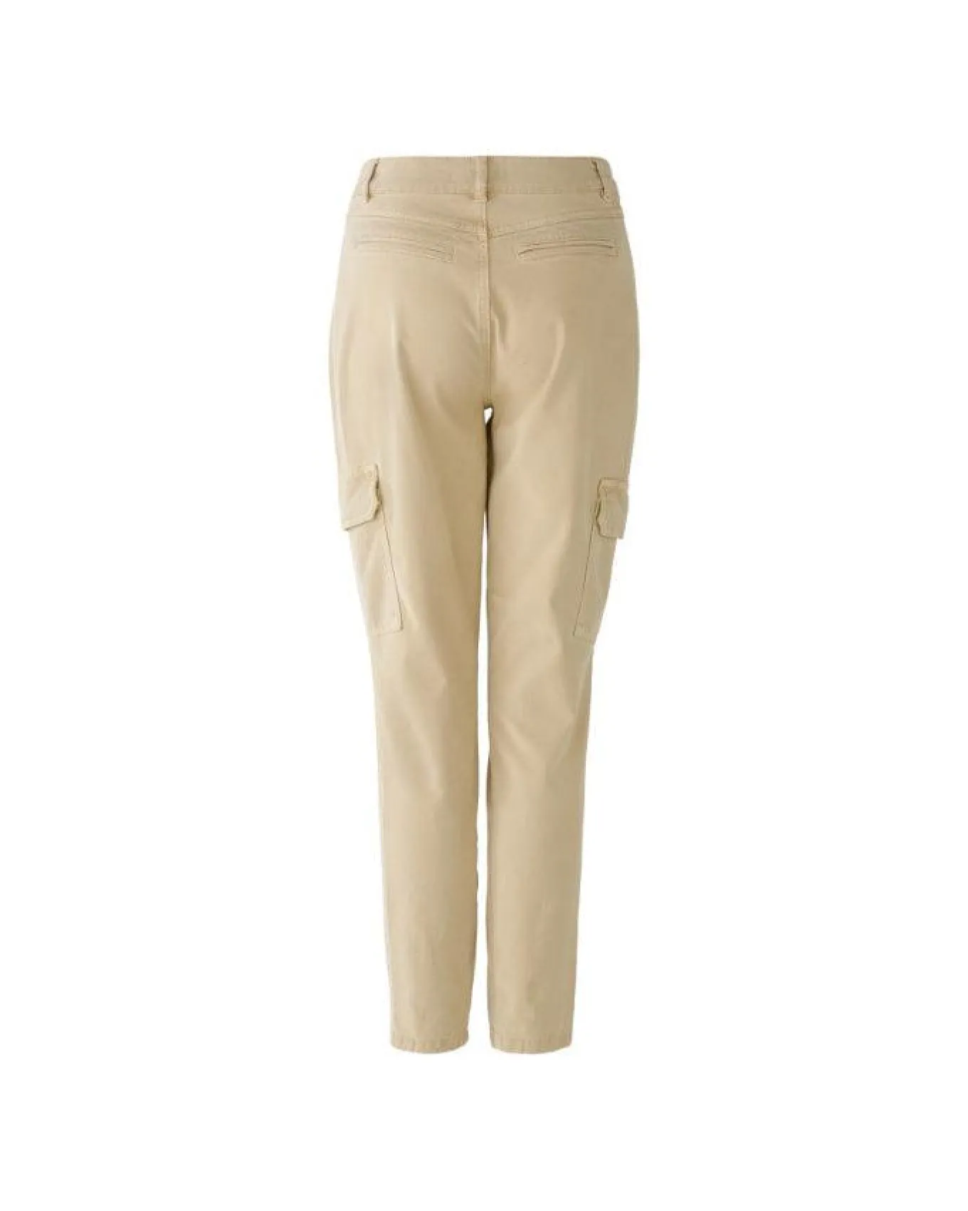 Oui cotton blend stretch cargo pants with slant front patch pockets, side cargo pockets, back welt pockets, button and zip closure, Length 72cm.