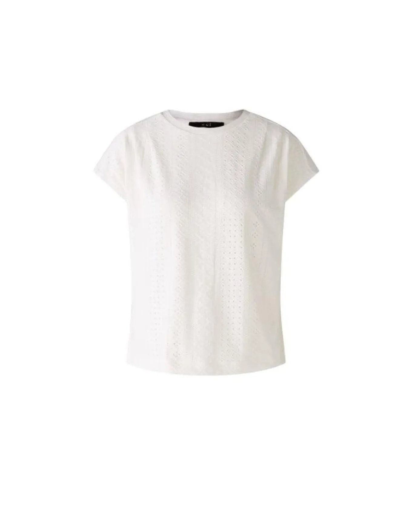 Oui gorgeous stretch round neck eyelet patterned t-shirt with cap sleeves, Length 60cm.