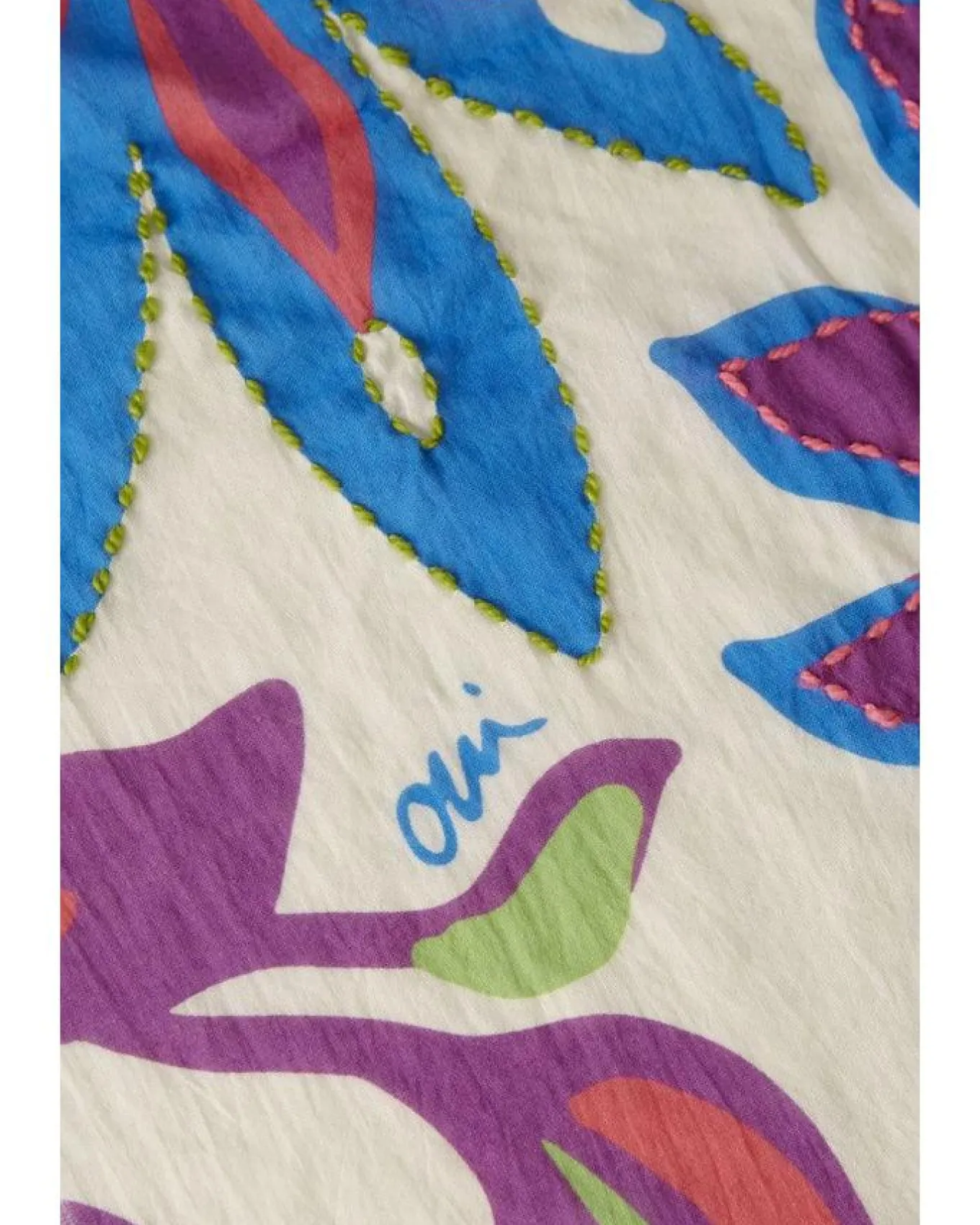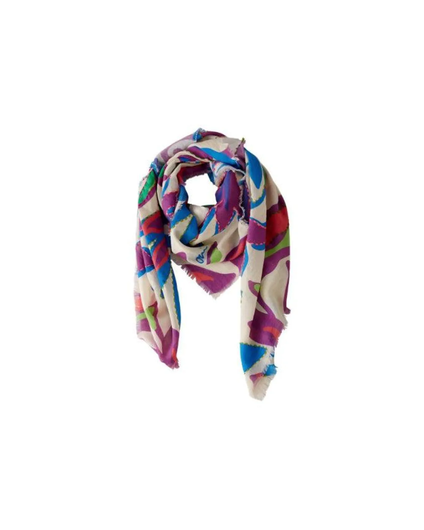 Oui cotton modal floral print scarf with embroideries, Length 140cm.