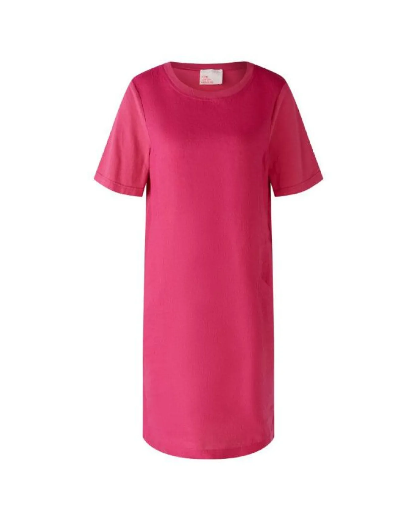 Oui classic linen t-shirt style dress with crew neckline, short sleeves with slit for added comfort and slant inset front pockets, Length 97cm.