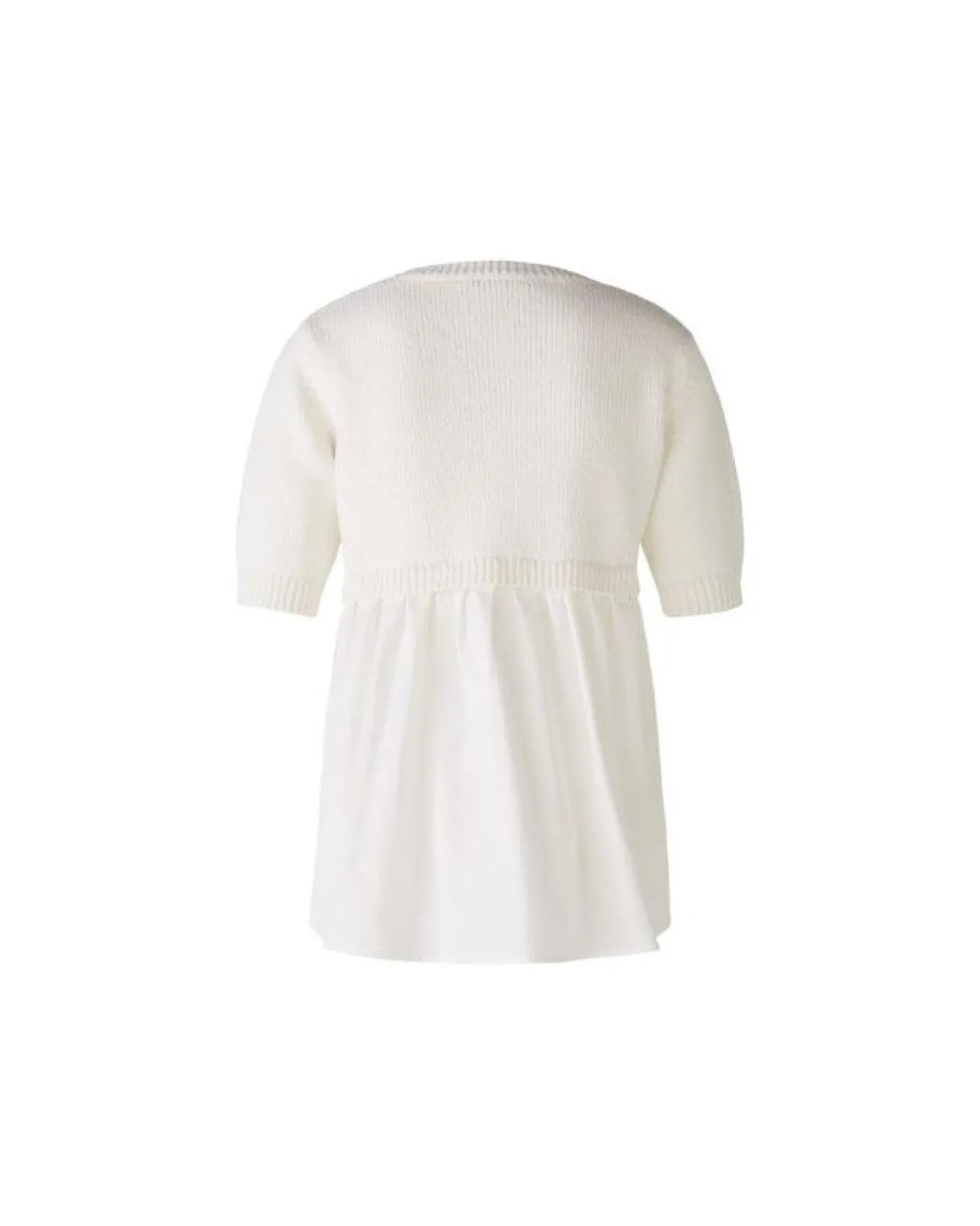 Oui cotton blend knit short sleeve pullover with round neck and pleated back panel, Length 67cm.