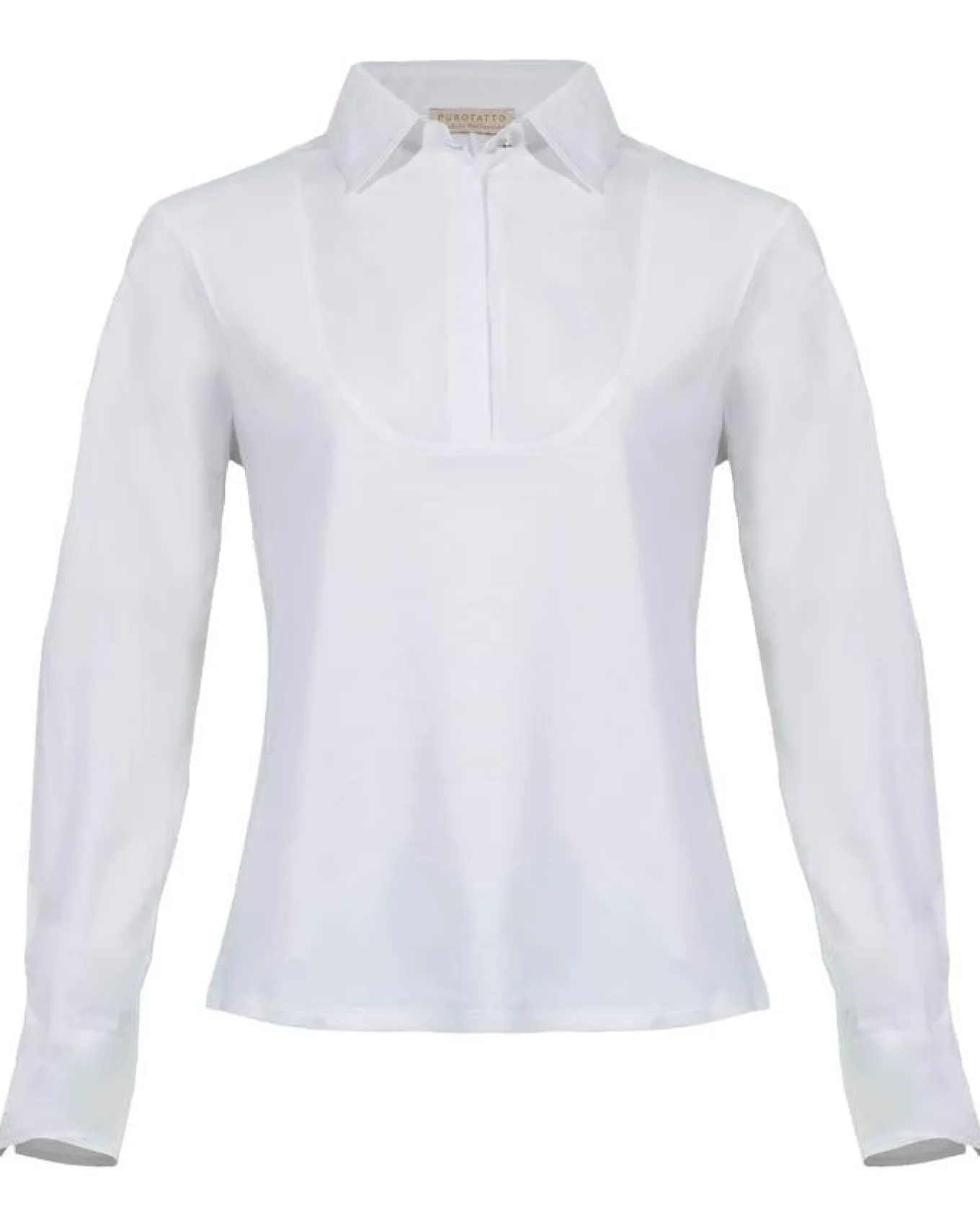 Purotatto tuxedo style jersey collared bib shirt with partial button placket and button cuffs. Perfect for layering.