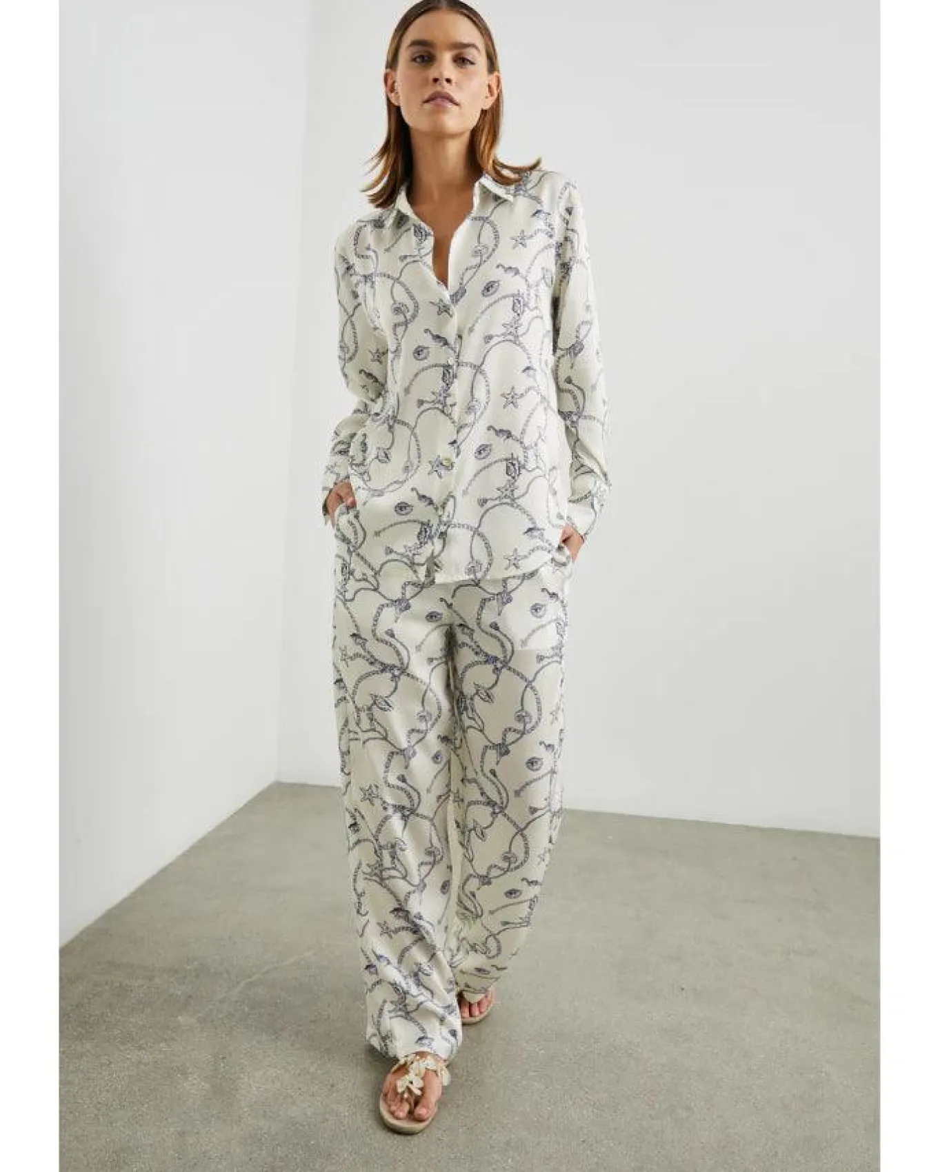Rails relaxed fit, soft and sleek shiny twill button down shirt with nautical inspired print, Size S – Length 27 1/4″.