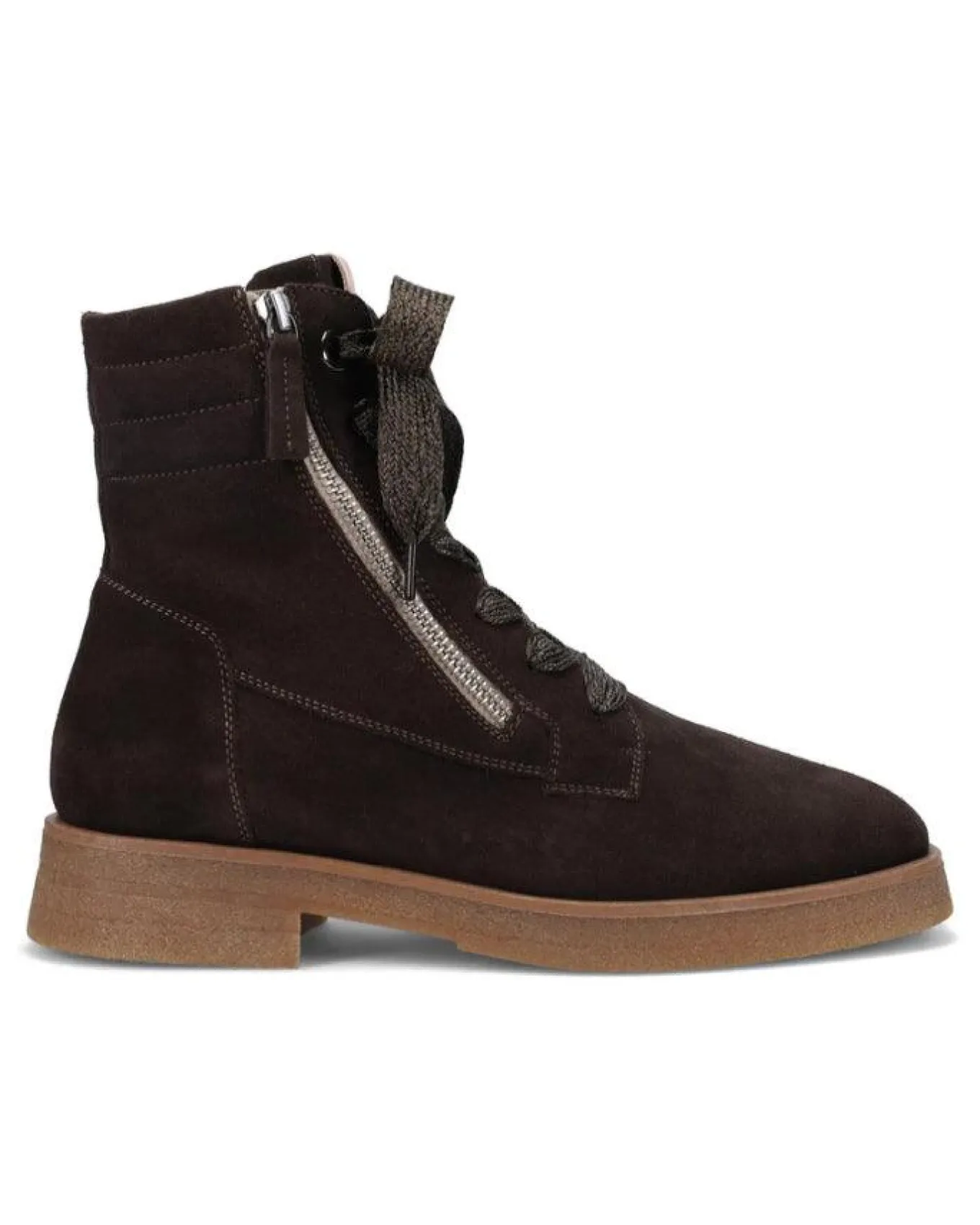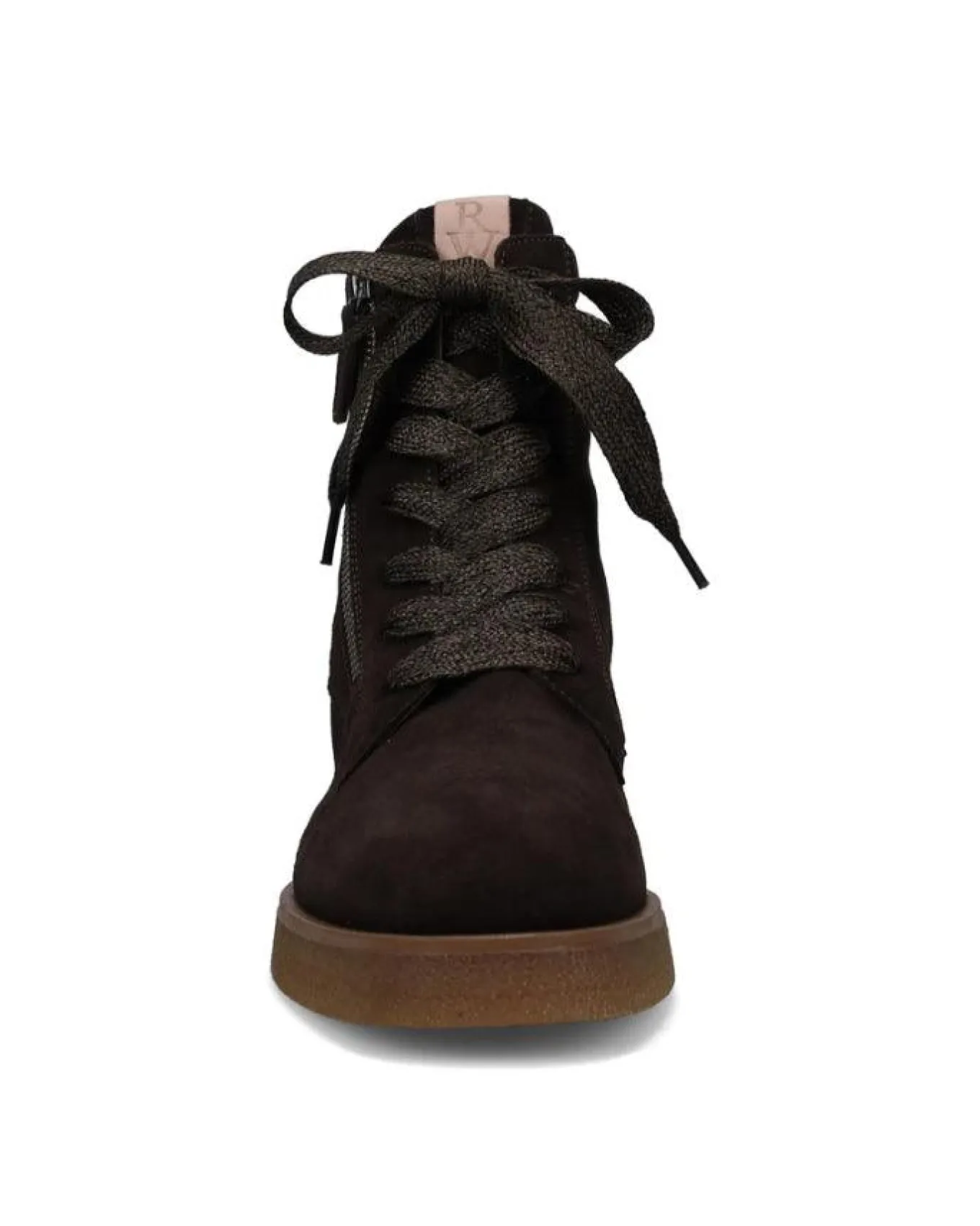 Ron White weatherproof suede lace up ankle boot with outside zipper, leather lined, removable footbed with arch support, anti-slip rubber sole, weatherproof, 40mm Heel with 20mm Platform.