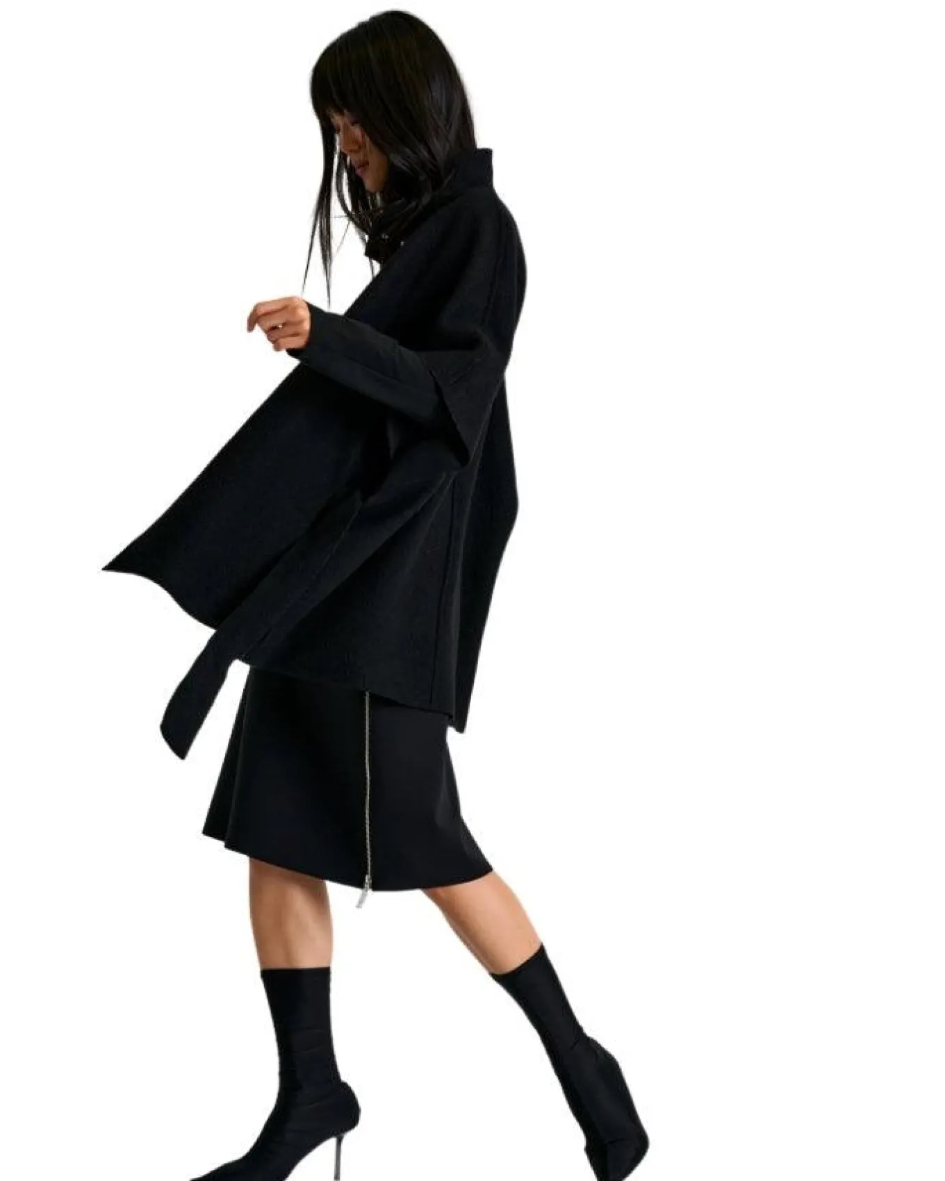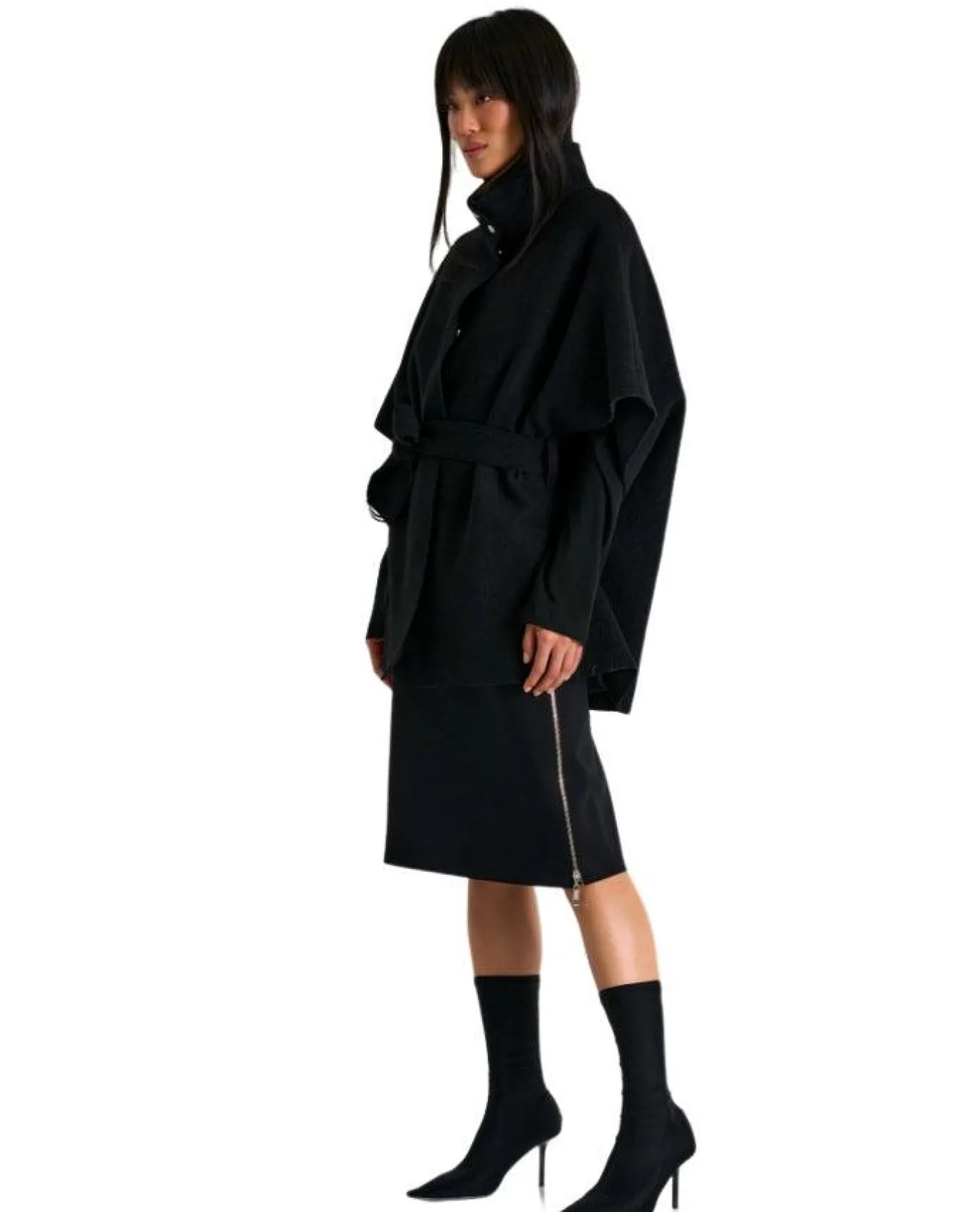 Shan A-line mid length skirt is embellished with a zipper sewn from top to bottom on each side giving a refined and classy look.