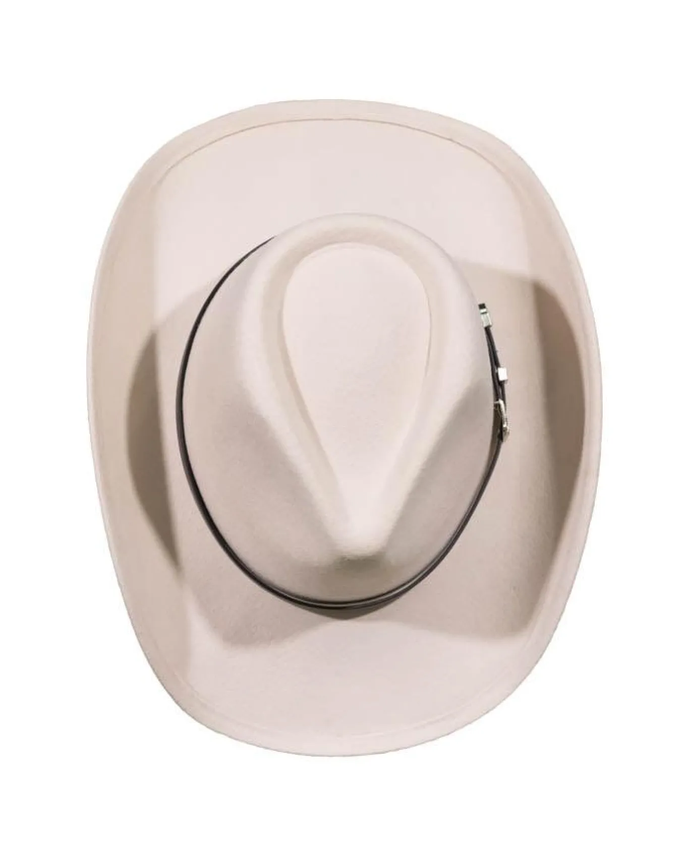 Shine Hats western style felt wool cowboy hat with hatband and adjustable sweat band around head, strap around, Size 57cm