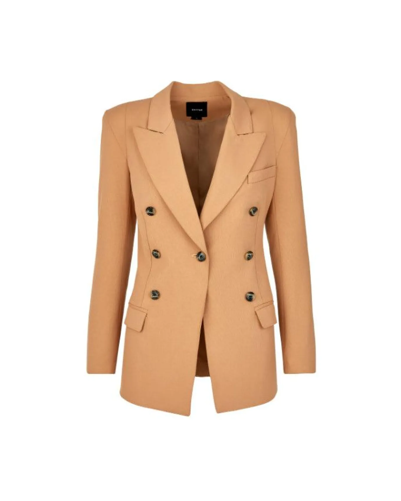 Introducing the Smythe Not A DB Pagoda Blazer in Camel, a piece that redefines the essence of tailored sophistication. This blazer stands out with its peaked lapel and longline silhouette, offering a decidedly tailored look that enhances your natural elegance. The unique pagoda shoulder design adds an architectural element, creating a silhouette that is both striking and refined.