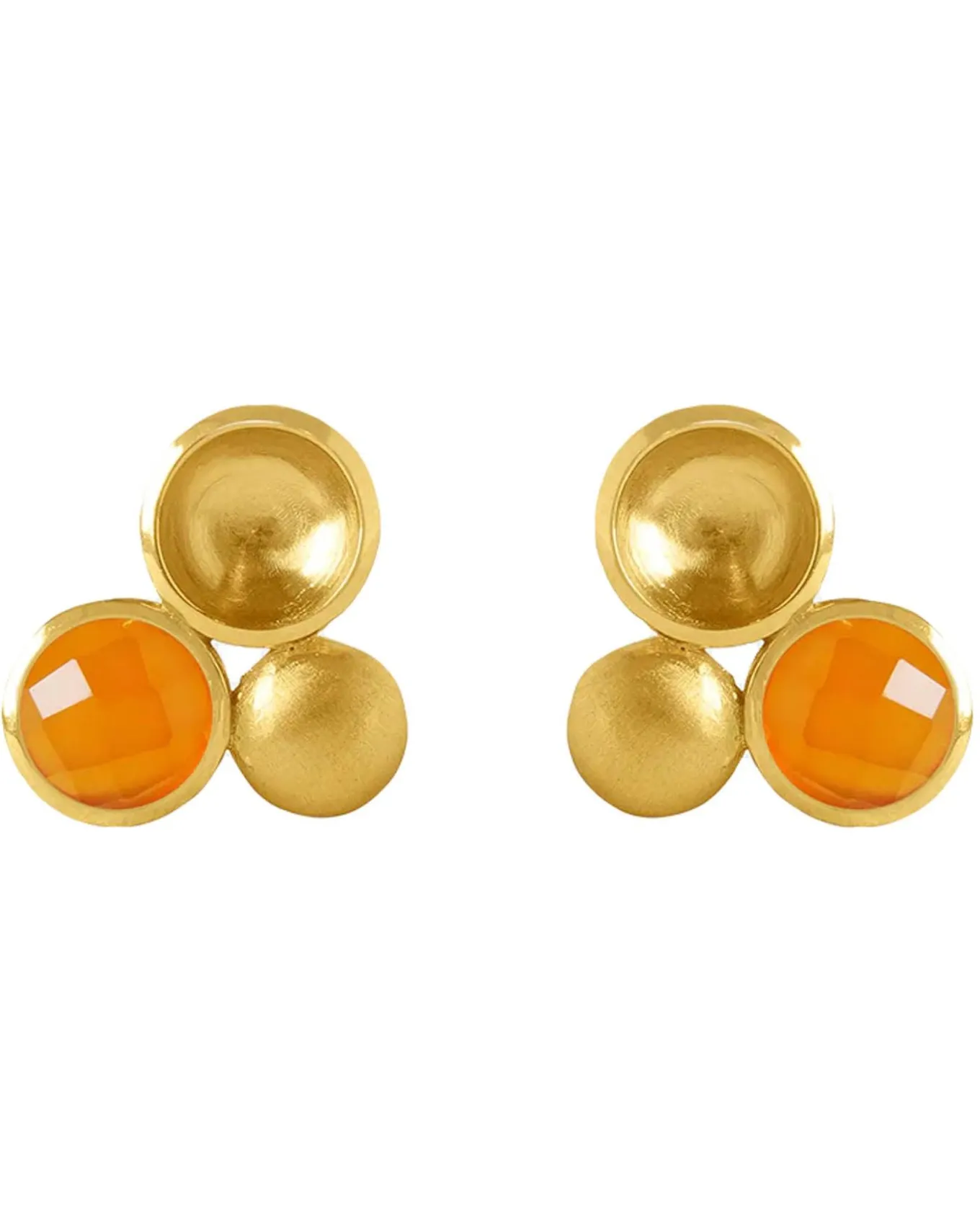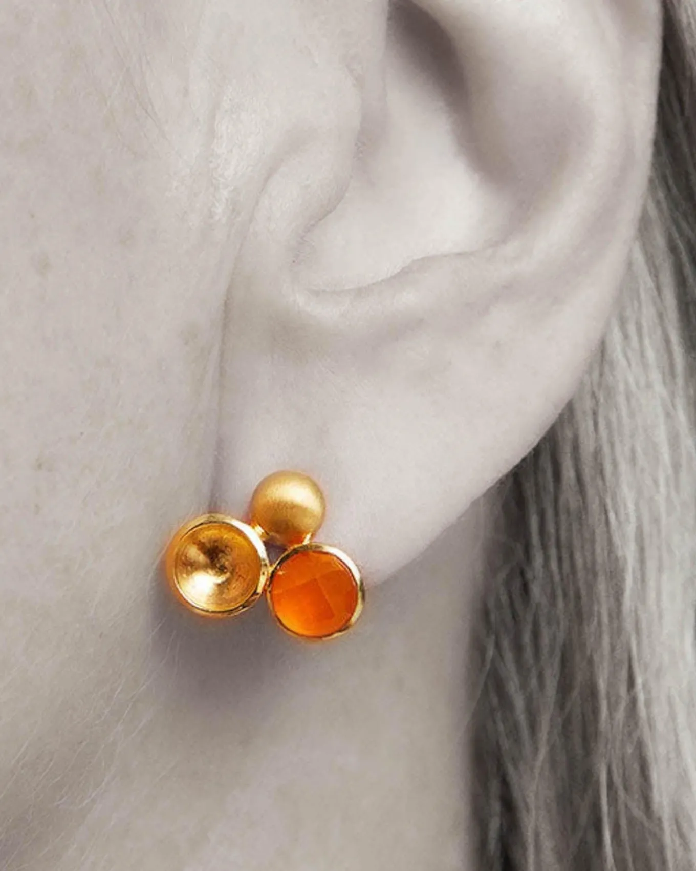 Gemstone stud earring filled with dimension and detail artfully combine a brushed dome, a concave disc and a checkered-cut gemstone in brushed 22 Karat Gold over brass, Diameter: 16mm