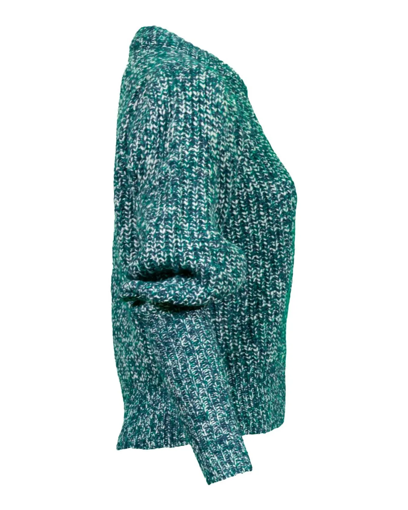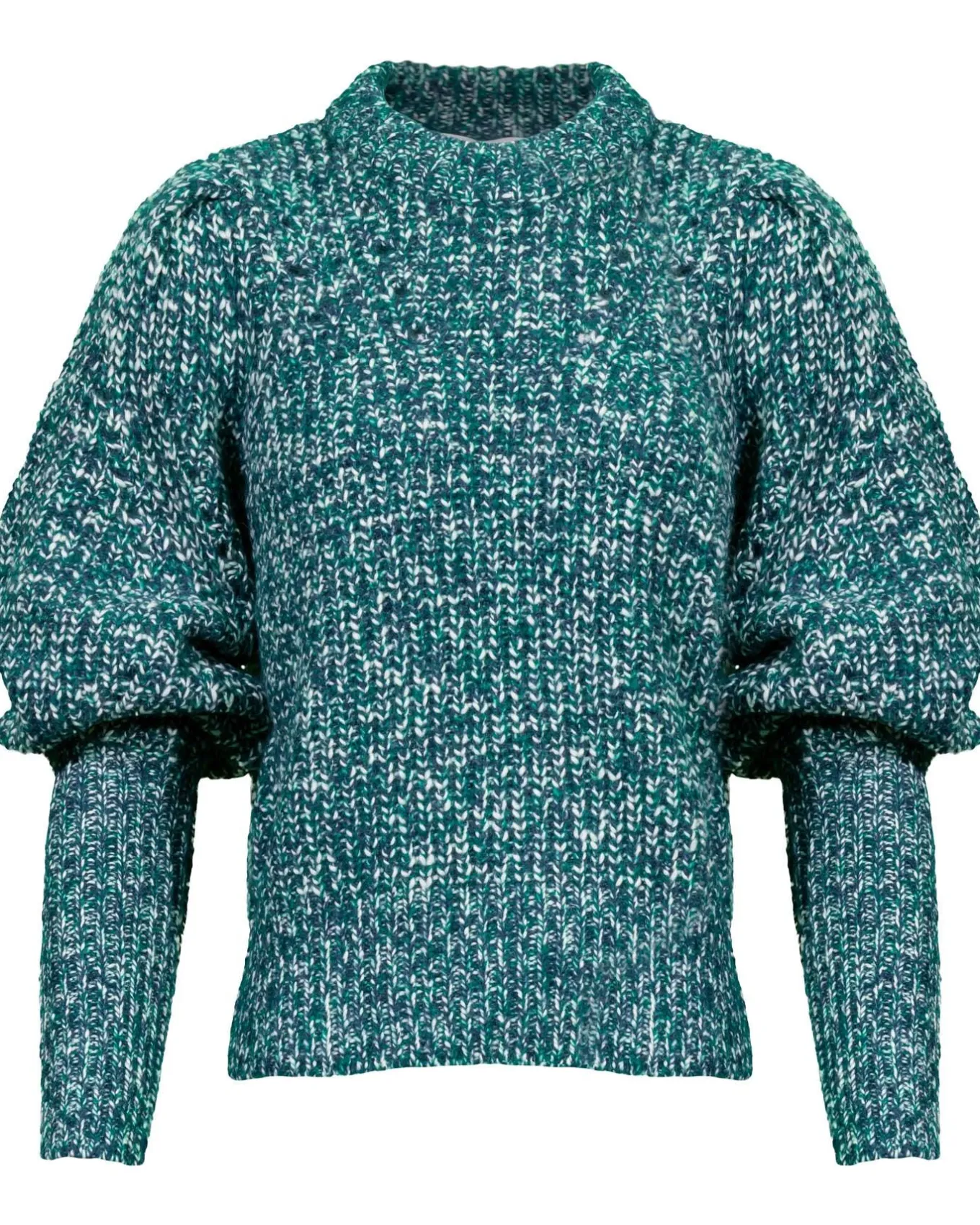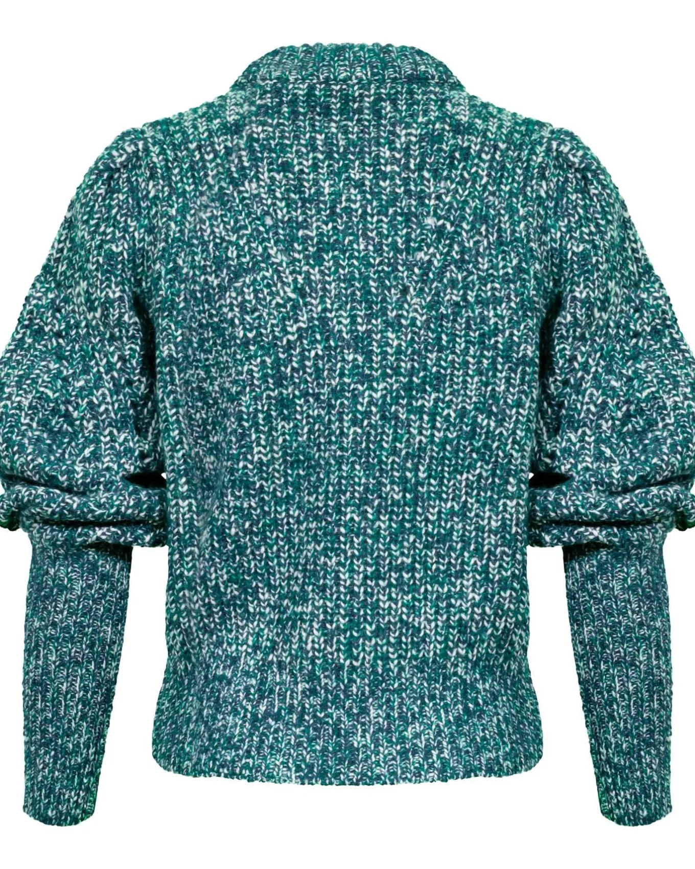 Relaxed fit chunky knit pullover with two-tone yarn and puffed sleeves, Size S – Length 20 3/4″, Sleeve Length 32 3/4″