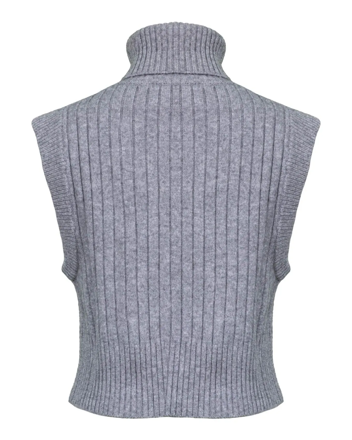 Easy fit wool cashmere mix turtleneck vest with wide ribbing on body and smaller ribbing on neck, large sleeve opening and hem