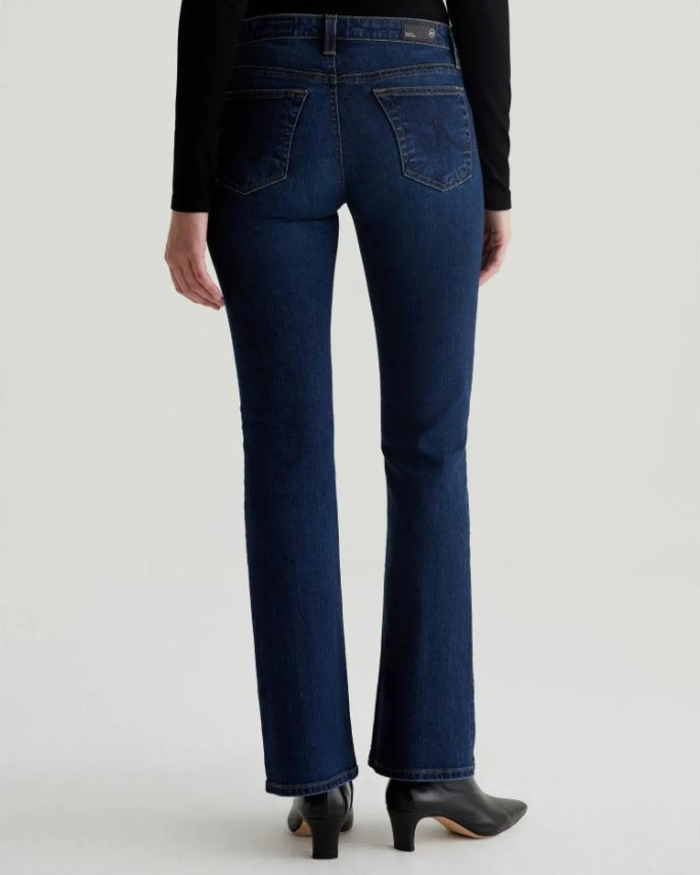 Adriano Goldschmied Jeans advanced stretch denim low-rise bootcut jeans sit below the natural waist and fit close before opening to a subtle flare.Classic five pocket styling, button and zip closure. Size 26 – Rise 8 1/2″, Inseam 31″, Knee Opening 14 1/4″, Bottom Opening 18″.