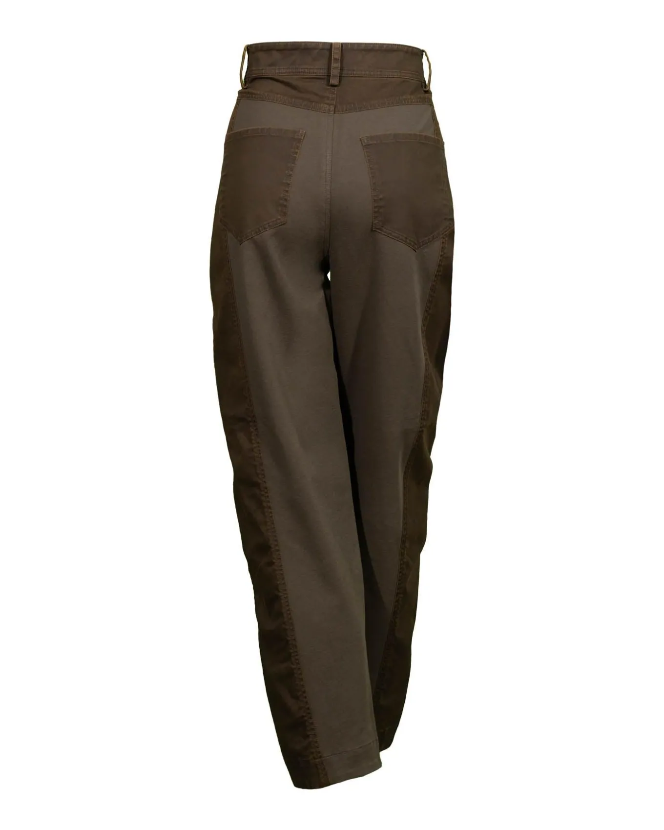 Annette Gortz mixed fabric tapered leg ankle pants with contrast fabric inserts on the waistband, down sides of legs, back patch pockets for a casual yet striking look. Classic 5-pocket styling, button and zip closure.