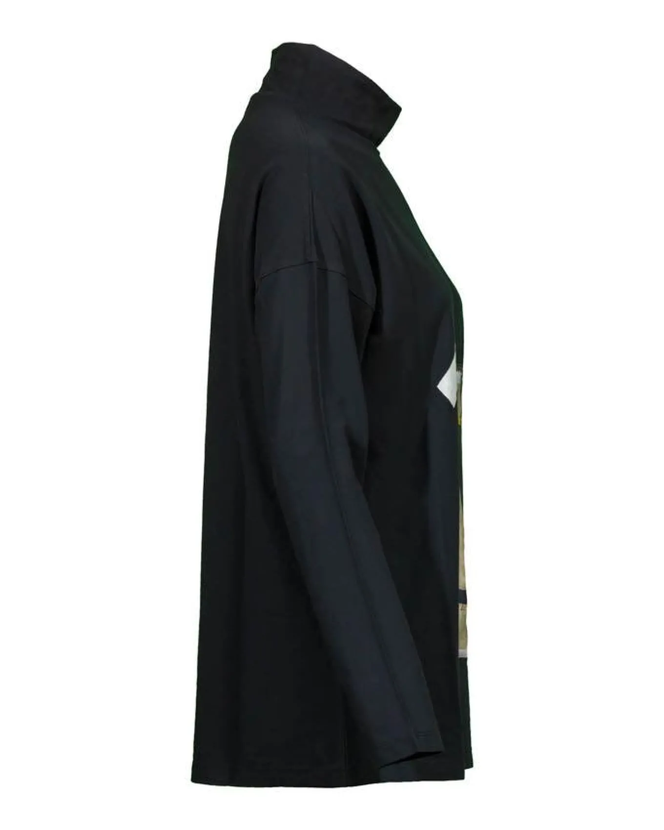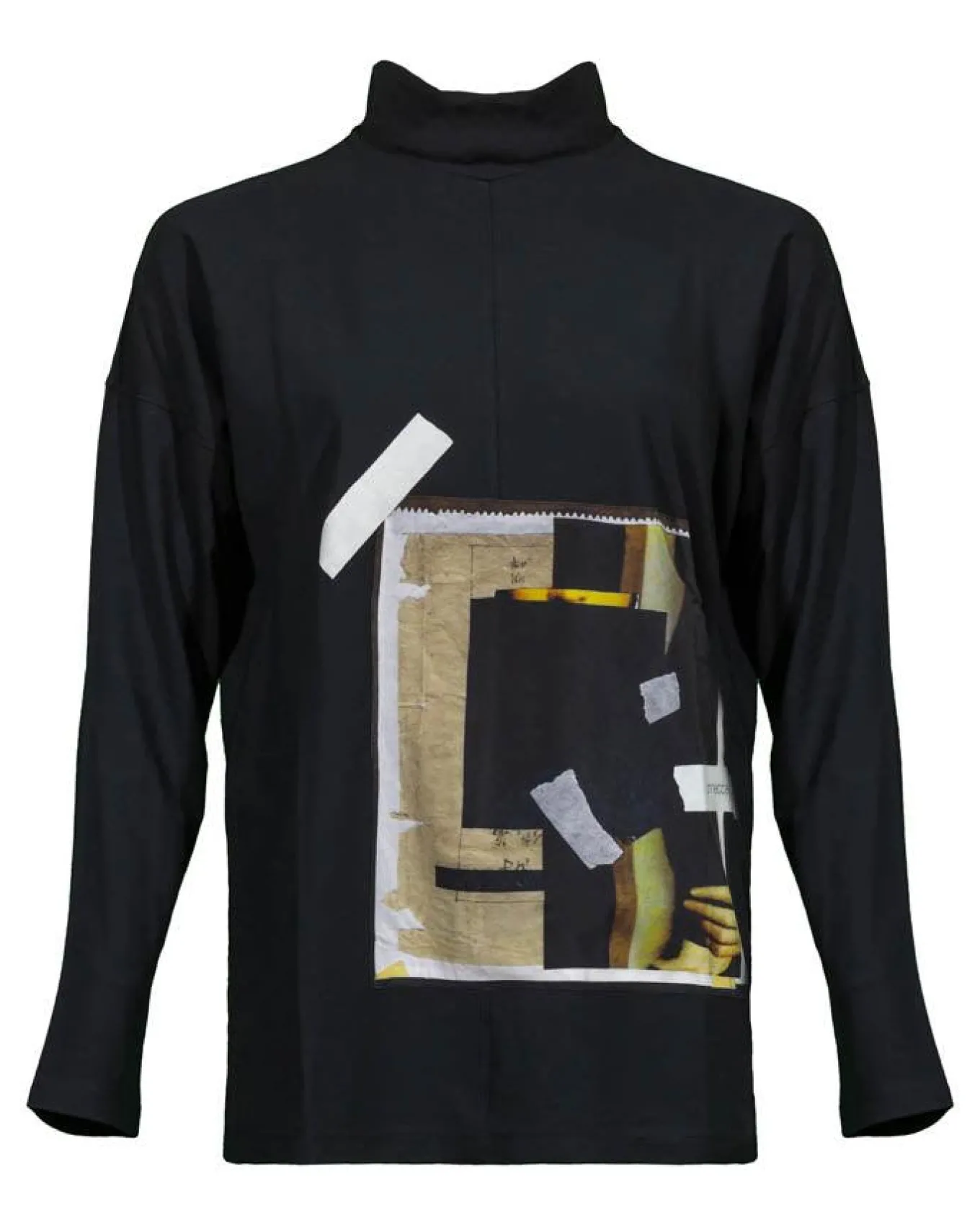 Annette Gortz cotton turtleneck pullover with long sleeves and silk print patch on front.